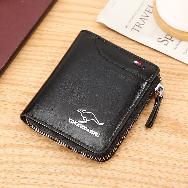 Dompet Pria Kangaroo Dompet Pria Pendek Lembut Kulit Besar Kapasitas Dompet Vertikal SIM Anti-Theft Beberapa Slot Kartu dompet Pria Import Berkualitas