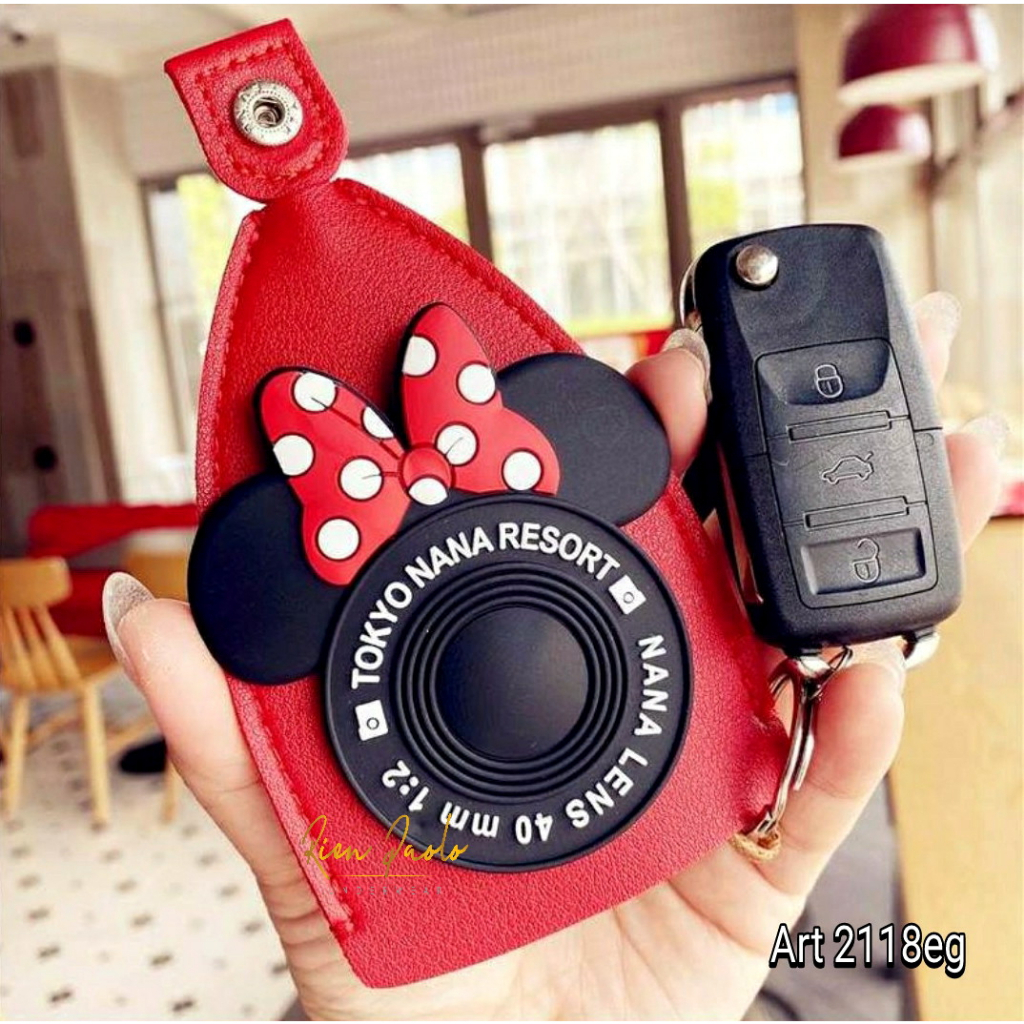 Dompet STNK Mobil Gantungan Kunci Mickey Mouse Doraemon Keychain Lucu Bahan Kulit Premium Rien Paolo R98
