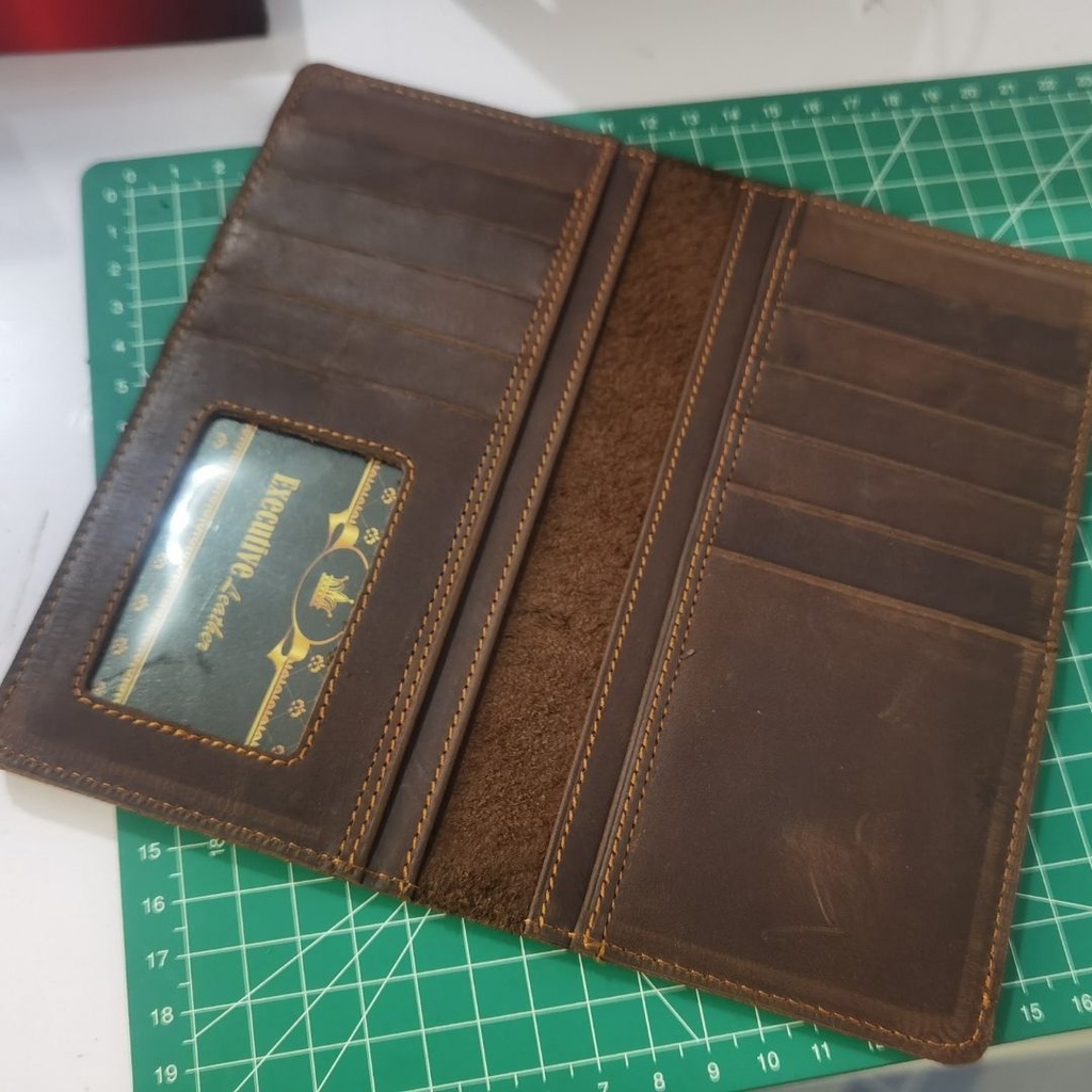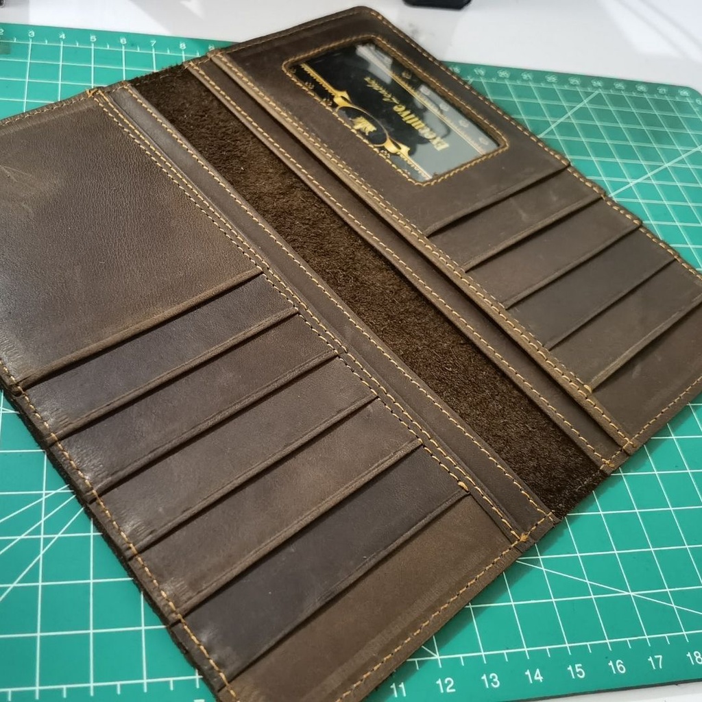 Dompet kulit asli panjang tipis Lipat Crazy horse