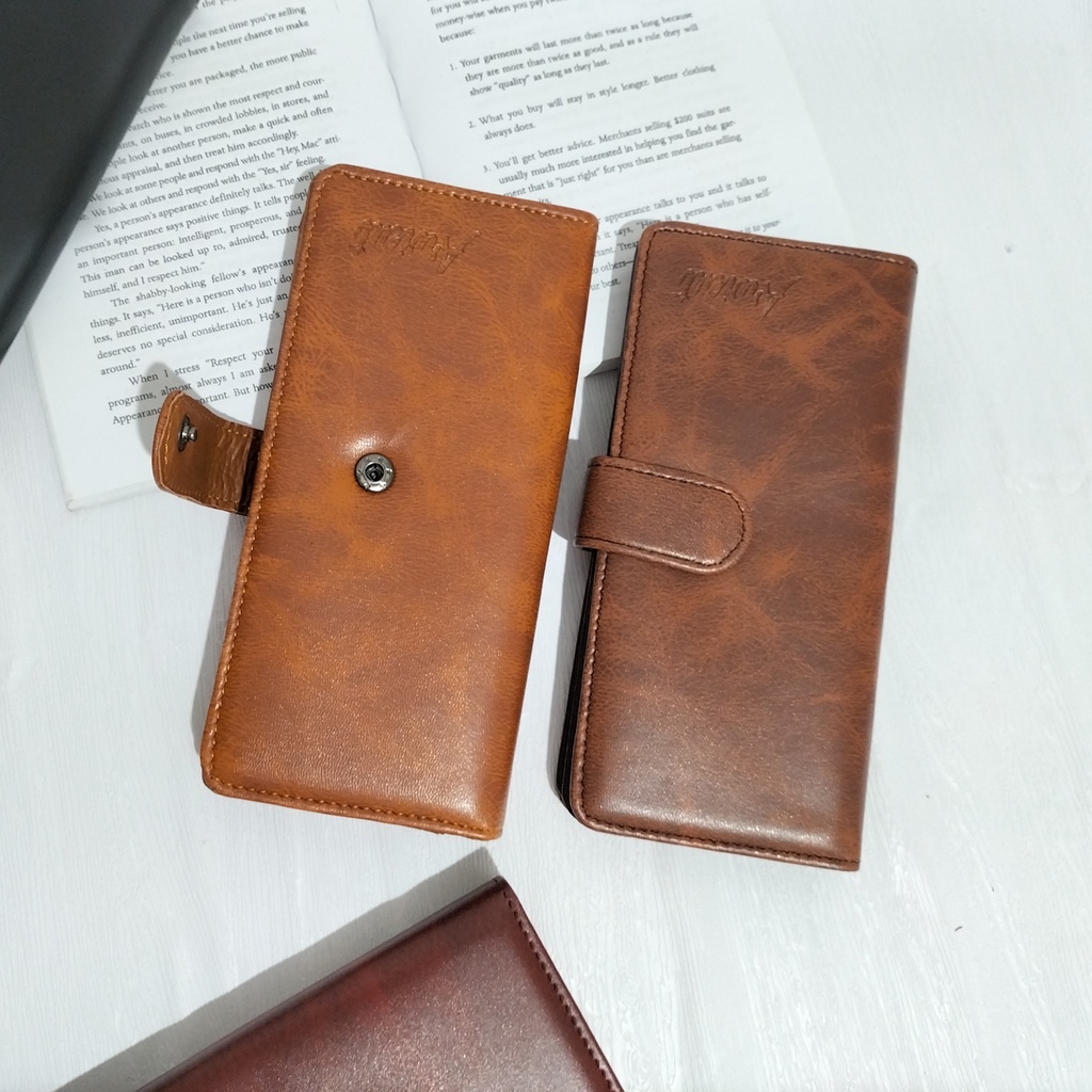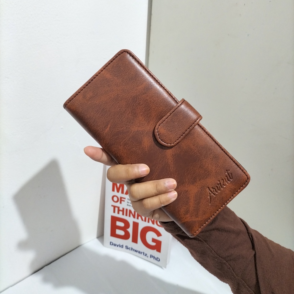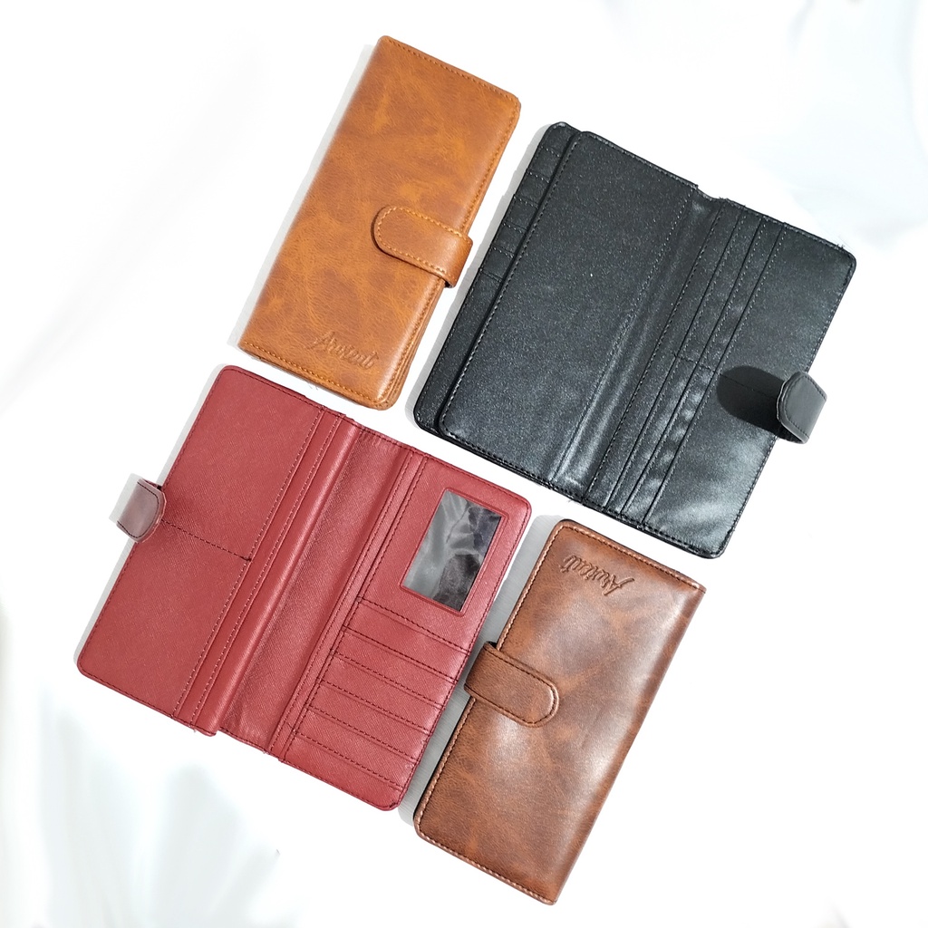 Dompet wanita panjang polos kulit sintetis tempat kartu dan uang dompet paspor lipat cewek