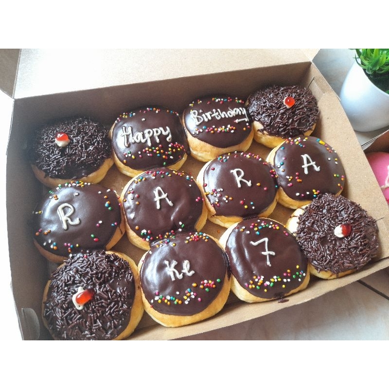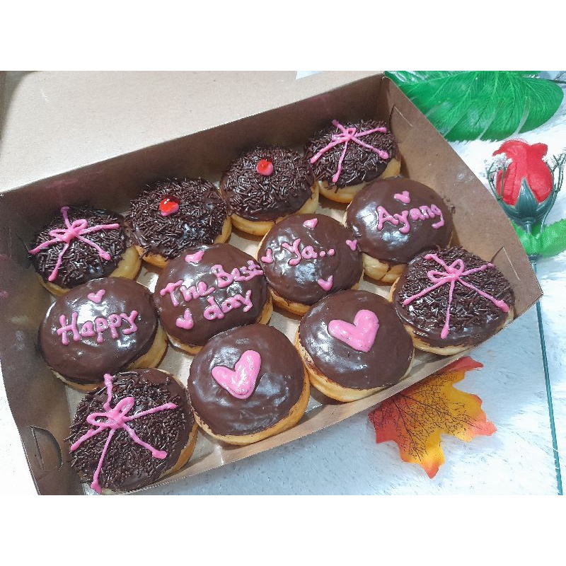 Donat coklat full /Donat ultah coklat bisa costum nama /Donat coklat full meses (request tulisan)
