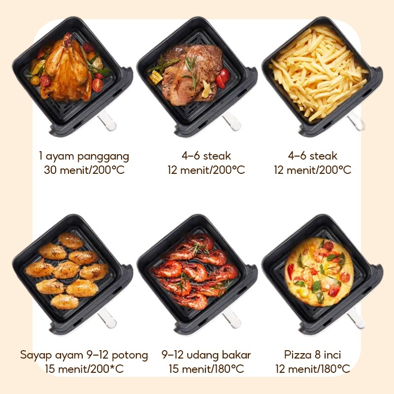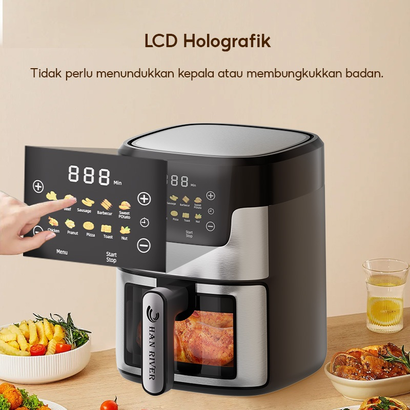 HAN RIVER Air Fryer Low Watt 650W Tubuh baja tahan karat 8L multifungsi