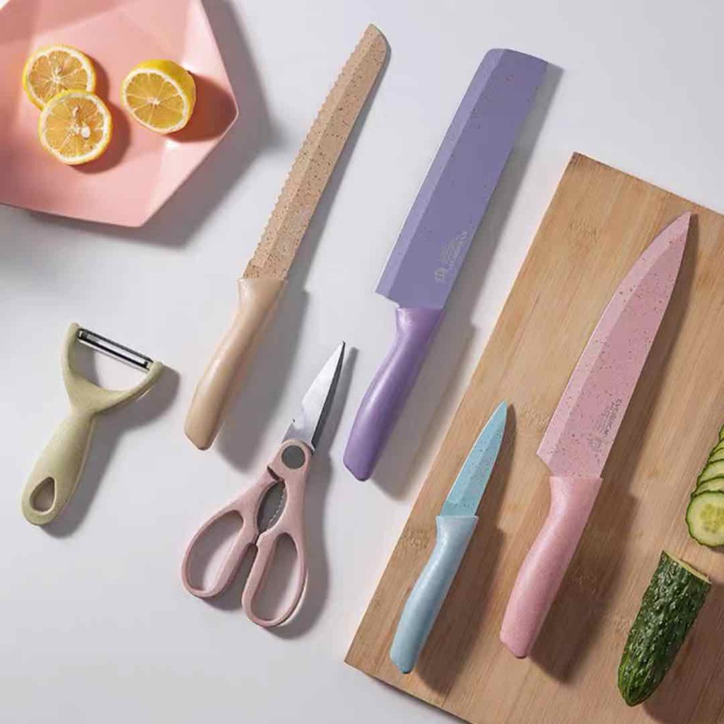 Fruit Bread Knife 6IN1 Pisau Set Stainless Dilapis Anti Lengket /Peralatan Masak Pisau SLOT/VS-1803