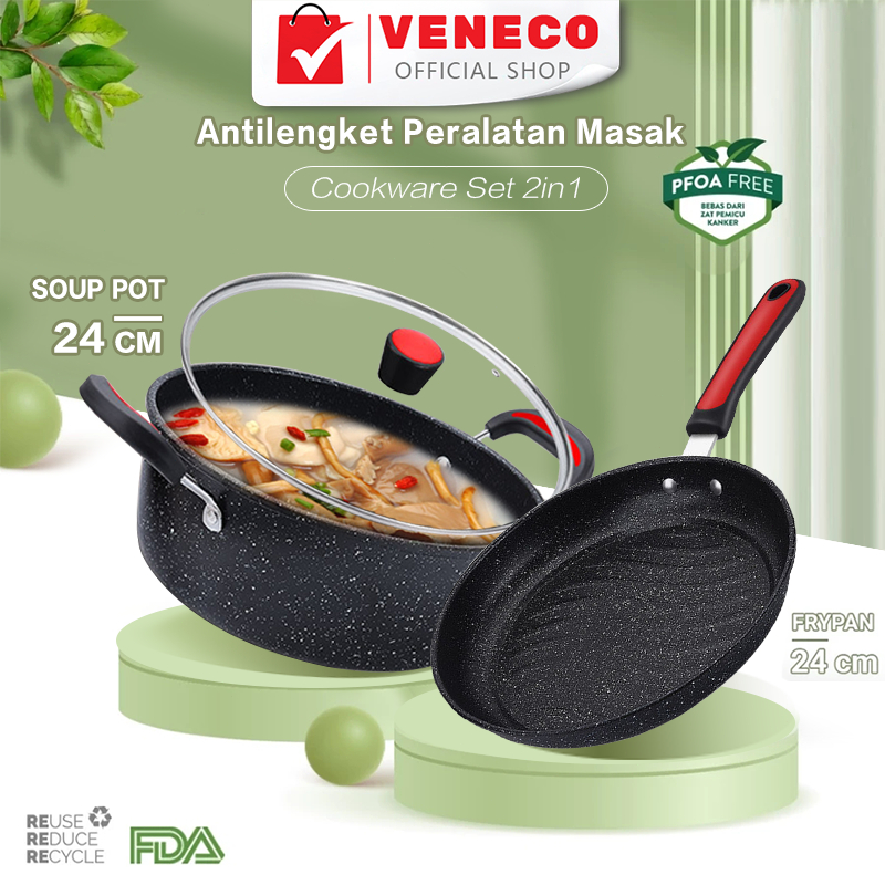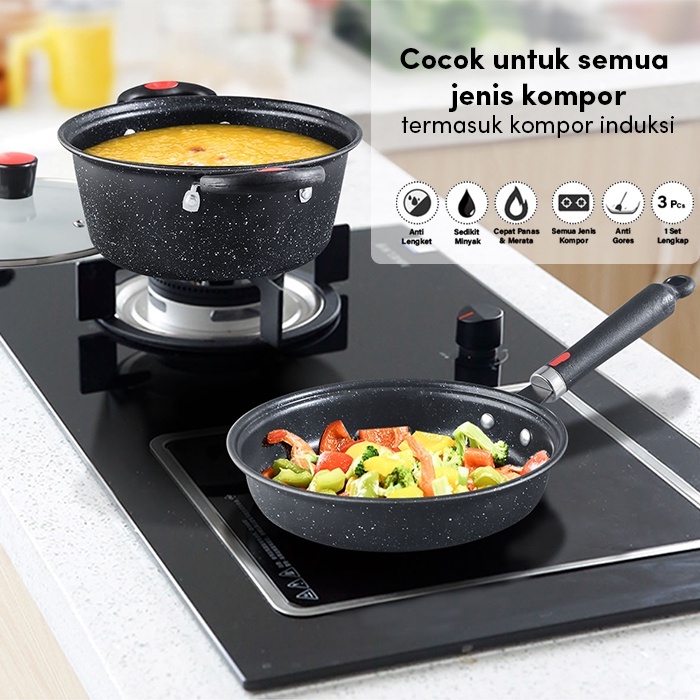 Antilengket Peralatan Masak 2PCS Peralatan Dapur Cocok Untuk Semua Kompor Wajan Panci Paket Keluarga Set / Panci Set Lengkap Anti Lengket