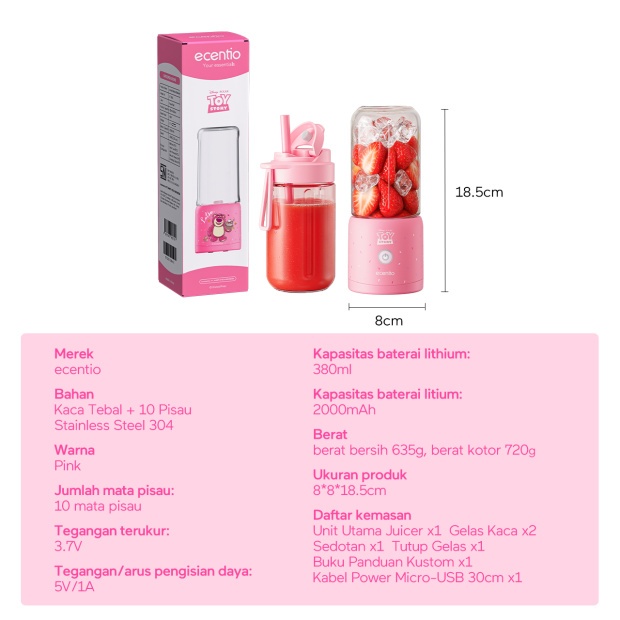 ecentio Kaca blender 8 Mata Pisau Portable 380+380ml Usb Juicer Mini Multifungsi