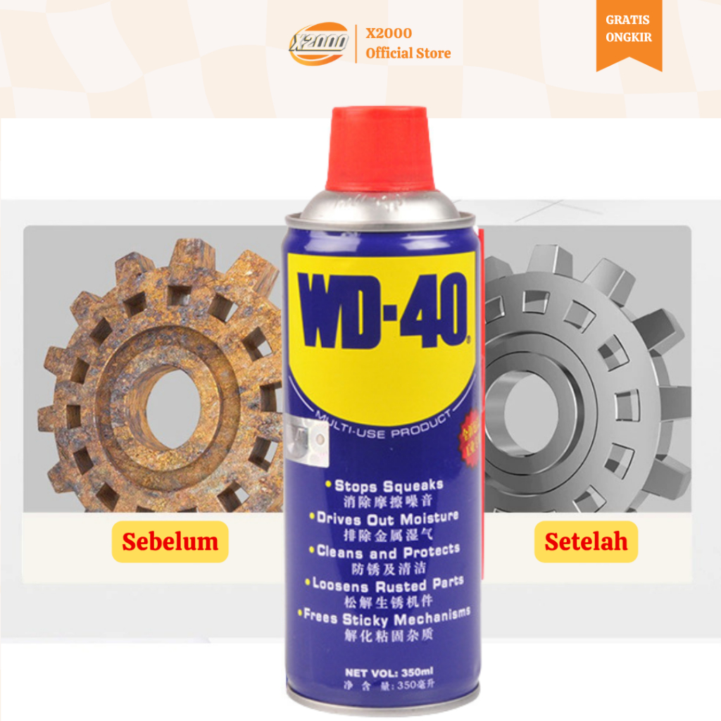Semprotan serbaguna WD-40 350ml, minyak pelumas, penghilang karat, penghalang kelembaban, perlindungan logam yang efektif