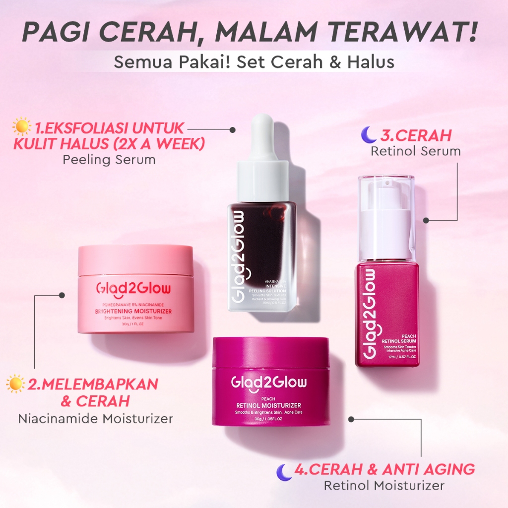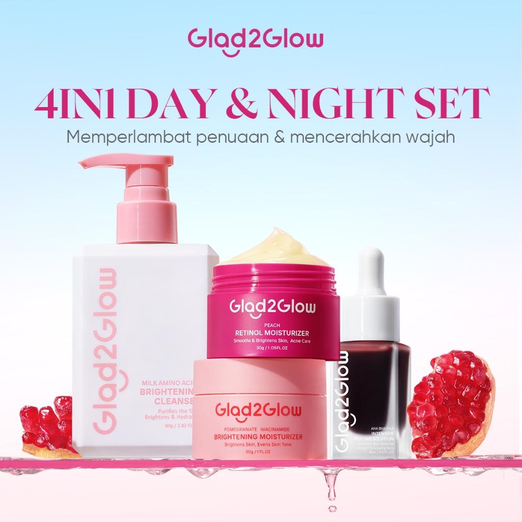 [100%ORI]Glad2Glow Day&Night 4in1 Renew Set -Brightening Moisturizer+Cleanser+Retinol moisturizer+peeling solution Pomegranate Niacinamide Mencerahkan Wajah Mencerahkan Melembabkan Kulit skin skincare G2G