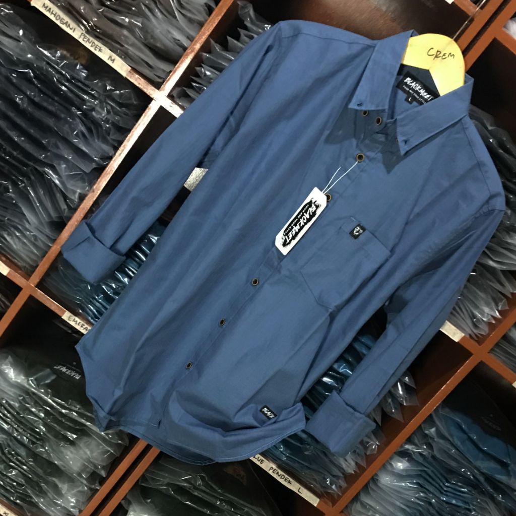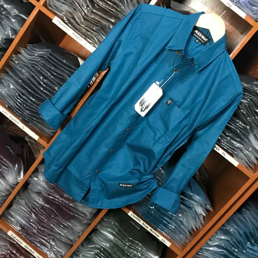 BLACKMEET- kemeja polos pria lengan panjang warna emerald blue high quality