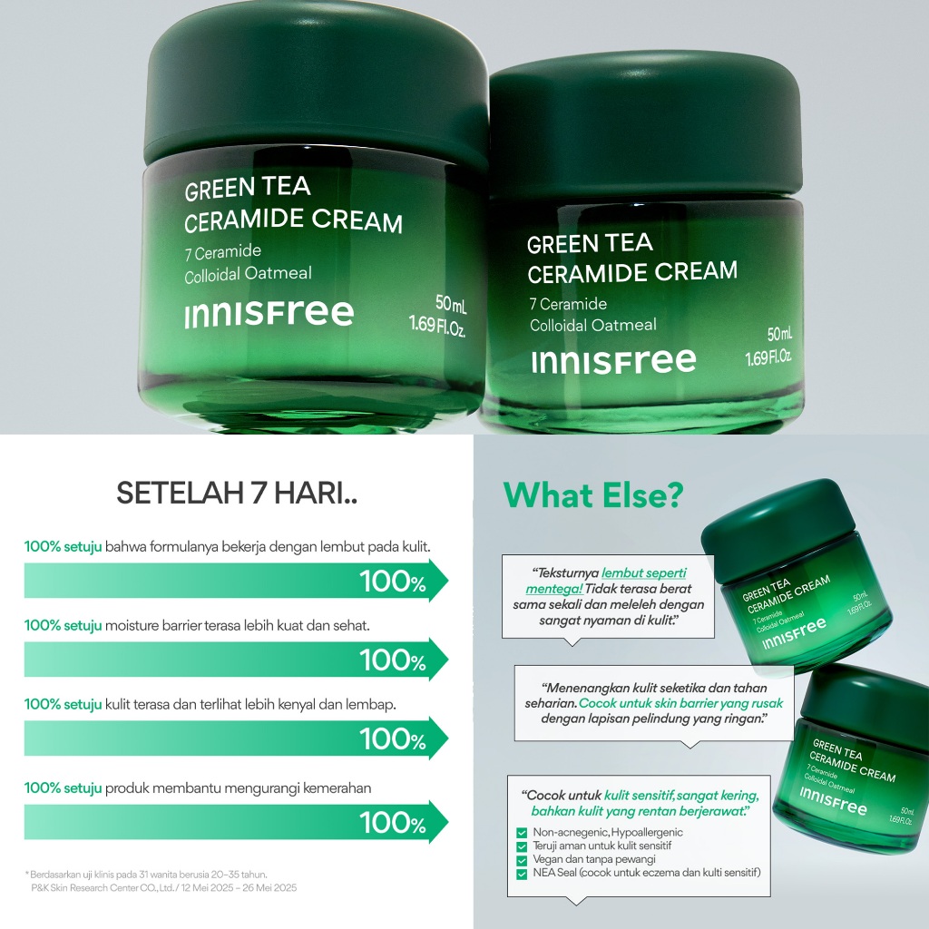 Innisfree Green Tea Ceramide Cream - Moisturizer untuk Memperbaiki Tekstur Kulit