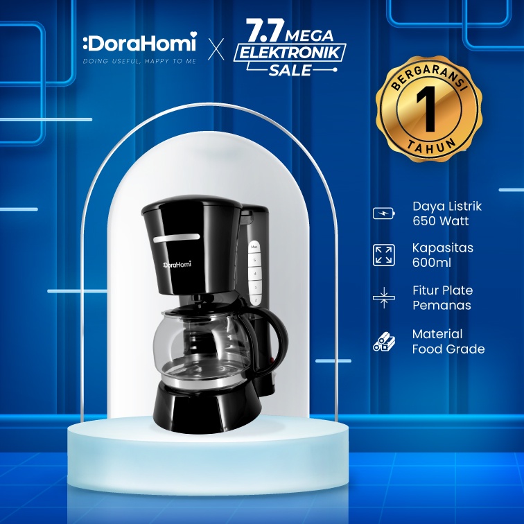 Dorahomi Coffee Machine Maker Mesin Pembuat Kopi dan Teh 600ML Dripp Kopi Instant Mesin Coffee Maker Elektrik Bergaransi