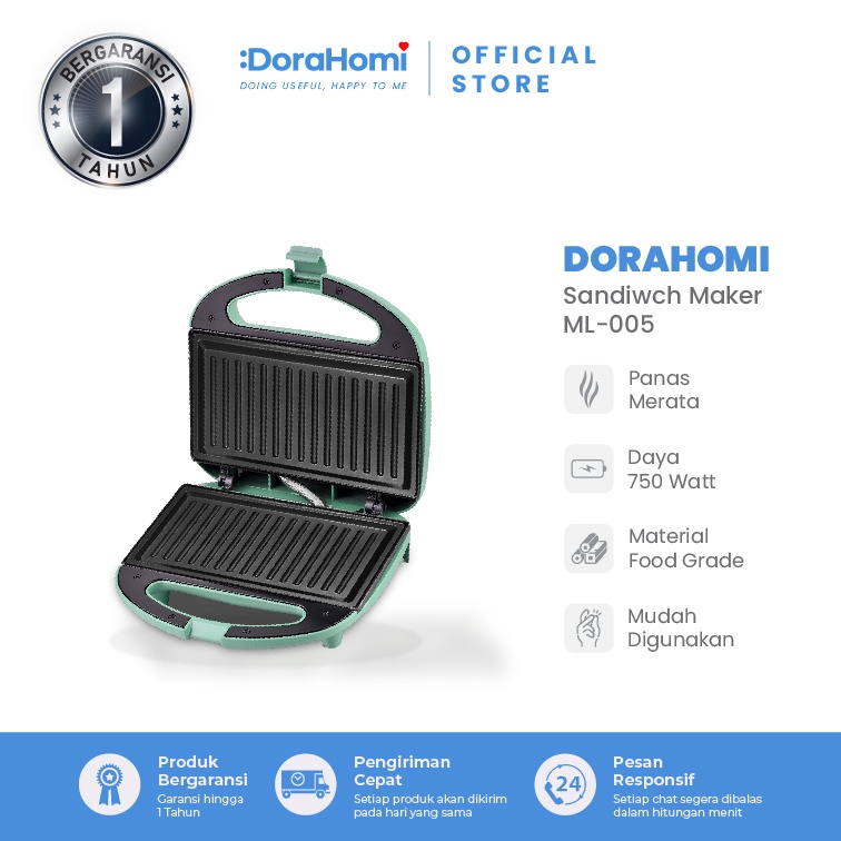 Dorahomi Sandwich Maker 2 Roti - Alat Pemanggang Roti Listrik Anti Lengket