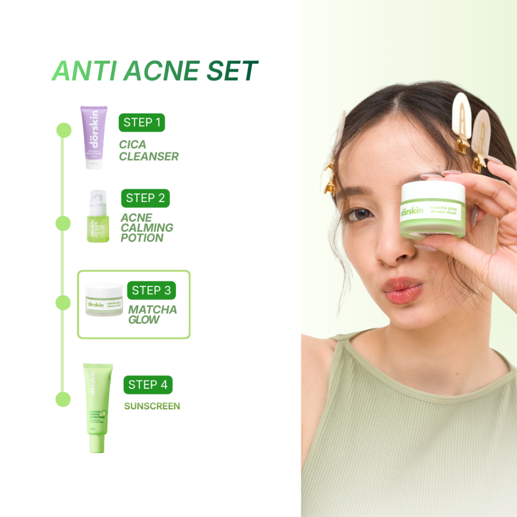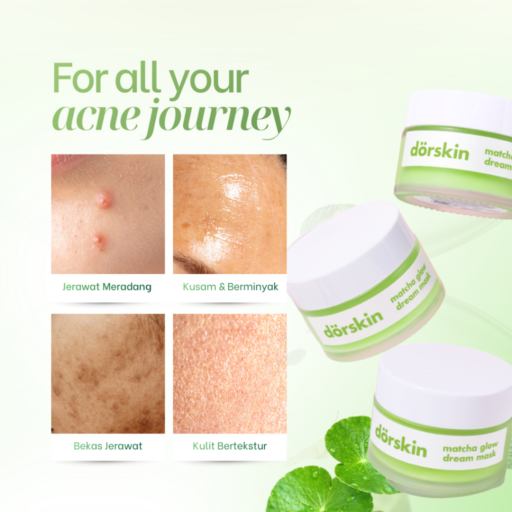 Dorskin - Matcha Glow Dream Mask 3in1 Moisturizer & Sleeping Mask Untuk Melembapkan dan Meredakan Jerawat Kemerahan dengan Centella Asiatica 2%