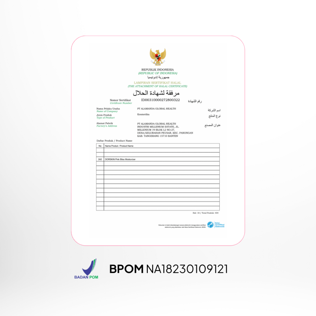 Dorskin - Pink Bliss Moisturizer dengan Extract Delima dan Niacinamide 2% Pink Moisturizer untuk Memudarkan Bekas Jerawat Kemerahan (PIE) dan Melembapkan