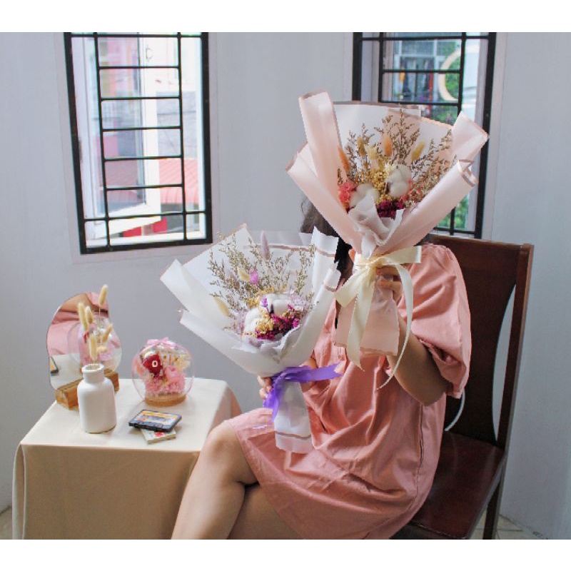 Double Cotton Dried Flower Bouquet / Buket Bunga Valentine / Bucket Bunga Valentine / Buket Bunga Kering / Hadiah Wisuda / Hadiah Anniversary / Hadiah Valentine / Bunga Wisuda / Graduation Flower / Bucket Bunga / Bucket Wisuda / Bucket Bunga Kering