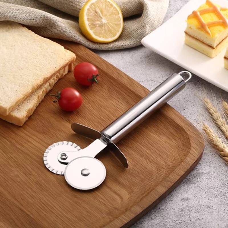 Double Pizza Cutter Pisau Pizza Roda Ganda Pemotong Adonan Stainless