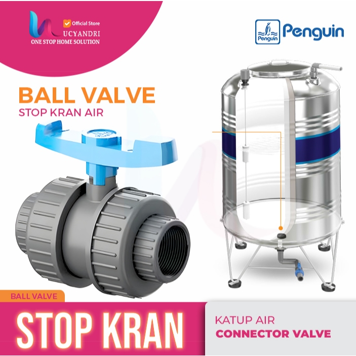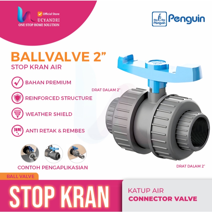 Double Union Ball Valve FxF Penguin ukuran 2 Inch Stop Kran