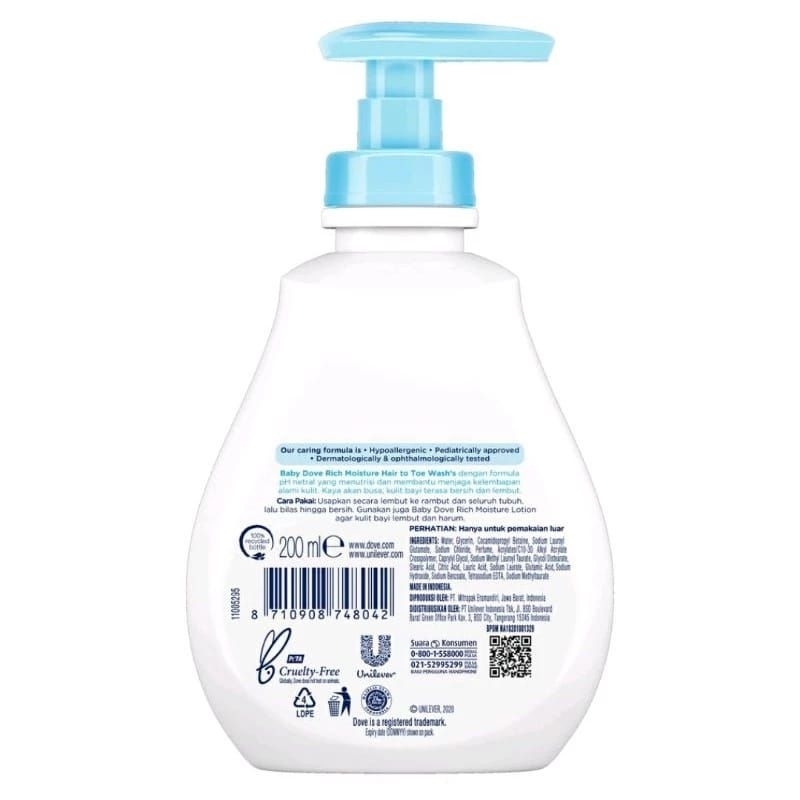 Dove Baby Wash Hair to Toe Rich Moisture 200ml - Sabun Mandi Bayi dan Anak
