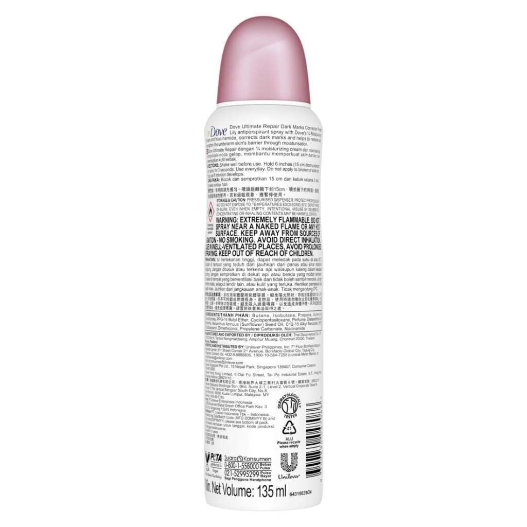 Dove Women Antiperspirant DEODORANT SPRAY Ultimate Repair Fresh Lily 135ml