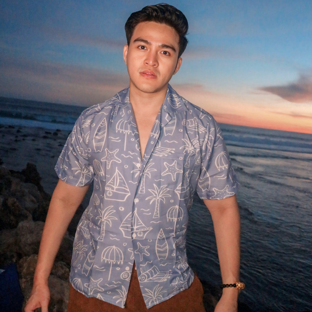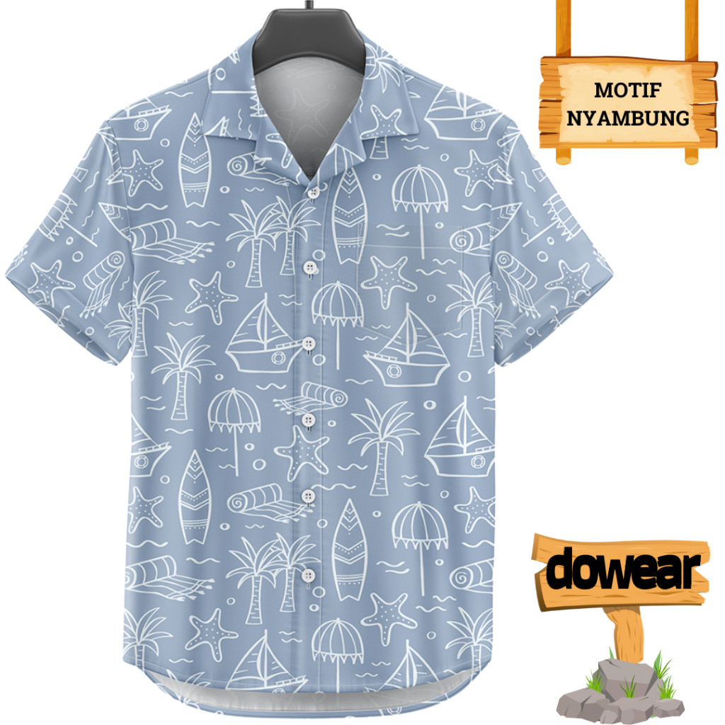 Dowear Baju Kemeja Motif Kekinian Cowok Cewek Bali Pantai Surfing Hawai Jumbo CORAK PANTAI BIRU 373