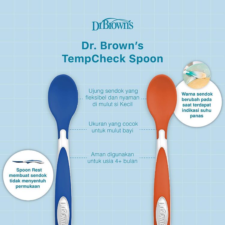 Dr. Brown's TempCheck Spoons, 4-Pack (TF024) / Sendok Makan Bayi / Peralatan Makan MPASI