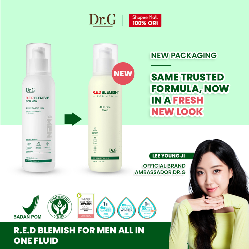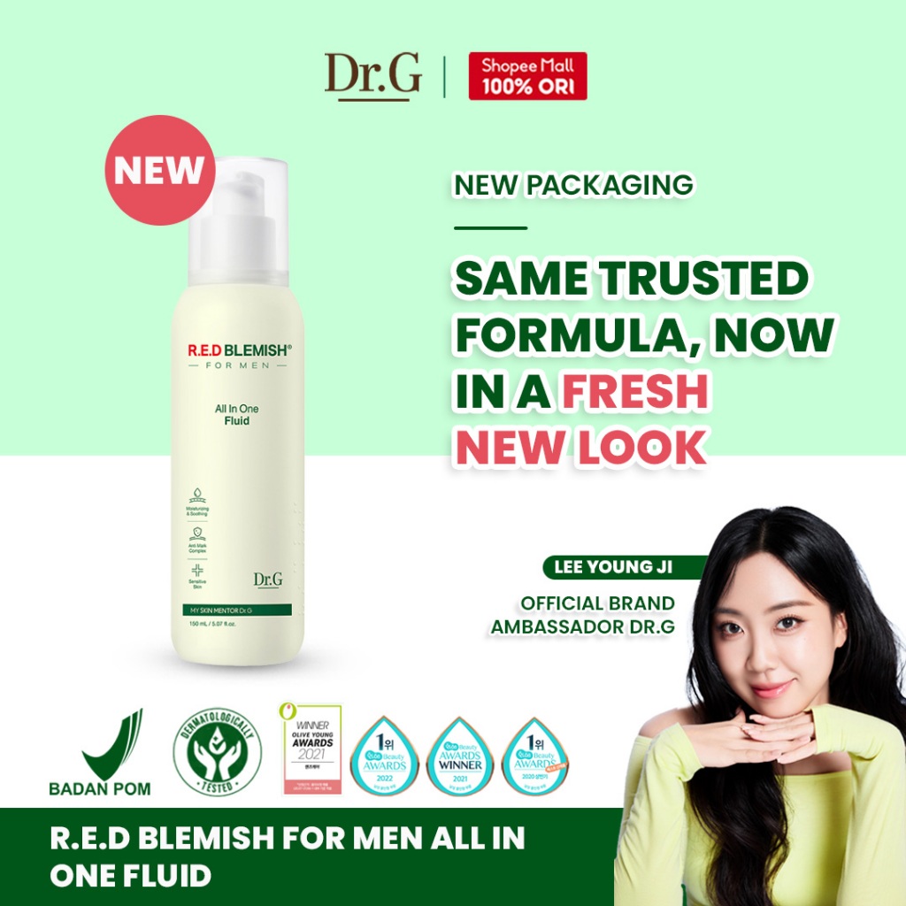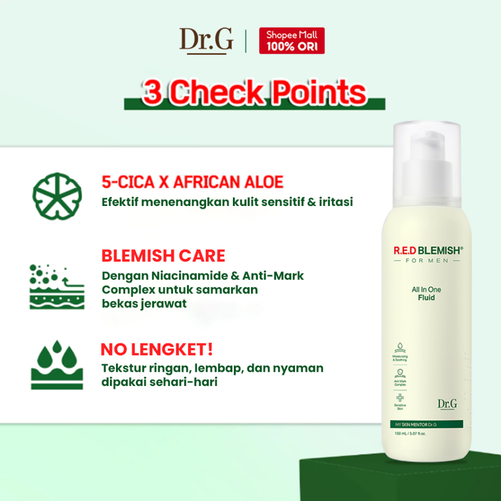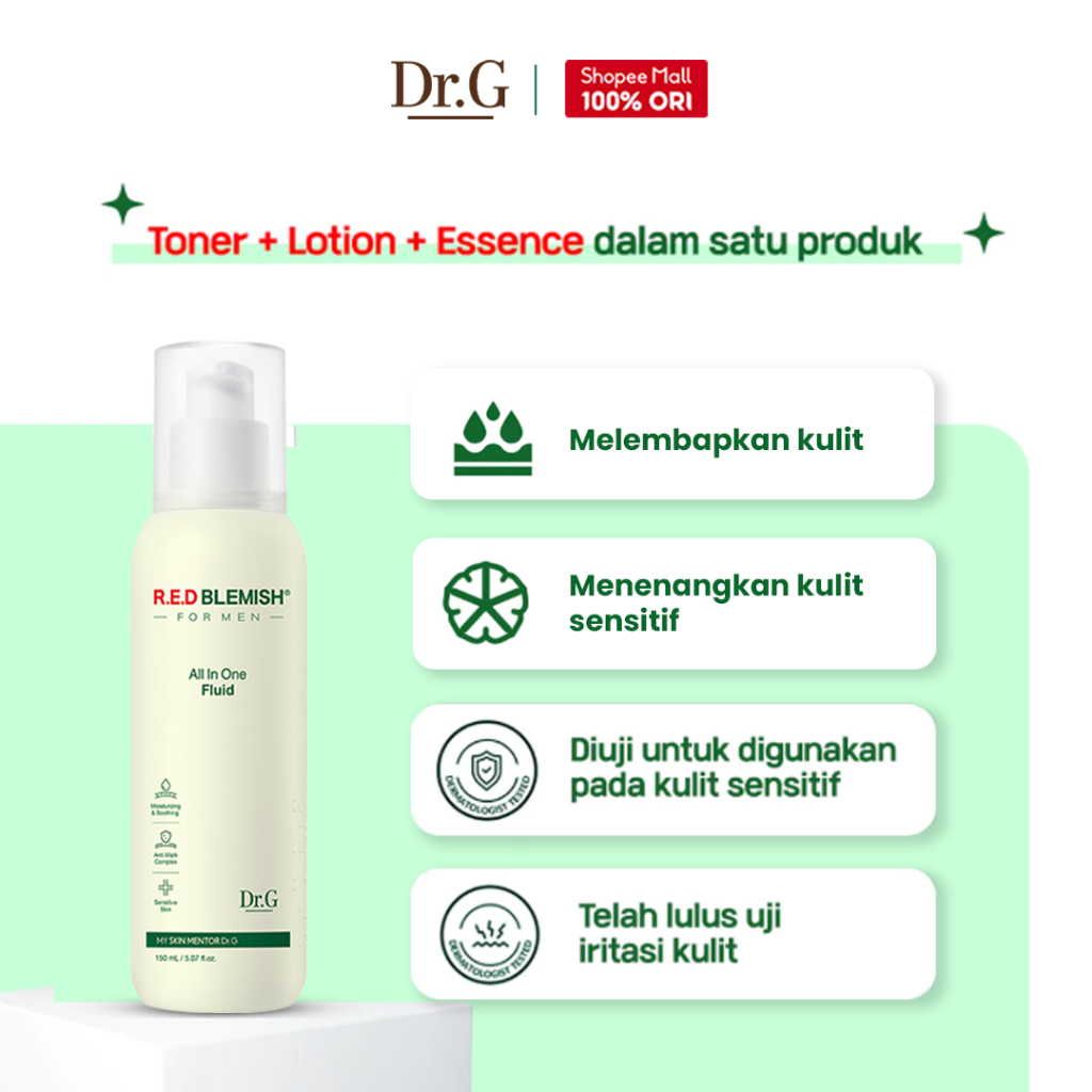 Dr.G R.E.D Blemish For Men All in One Fluid - 150ml | Toner 10 CICA Complex Hydrating Moisturizing Menenangkan Kulit Sensitif Berjerawat Pria Korea BPOM