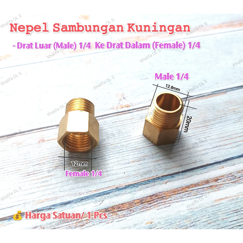 Drat Ulir Dalam 1/4 Female ke Drat Ulir Luar 1/4 Male Cowo Cewe Double Dobel Nepel Vlock Sock Sok Bos Sambungan Pipa Kuningan Kompresor Compresor Angin Brass Pipe Fitting Copper Hose Hex Coupling