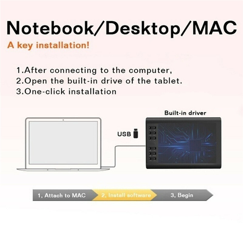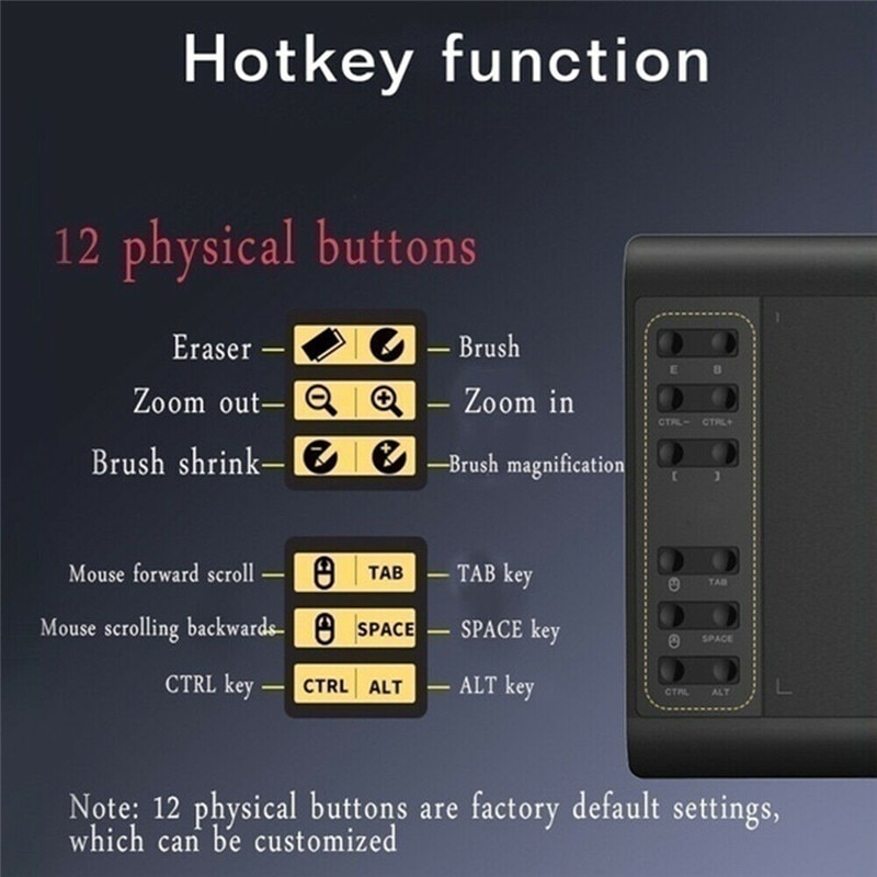 Drawing Tablet Alat Gambar Digital 10x6" Professional Graphics Drawing Tablet 12 Express Keys 8192 L