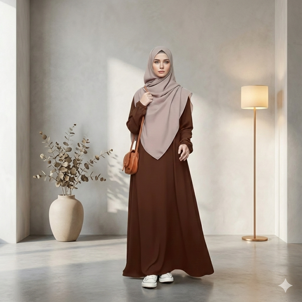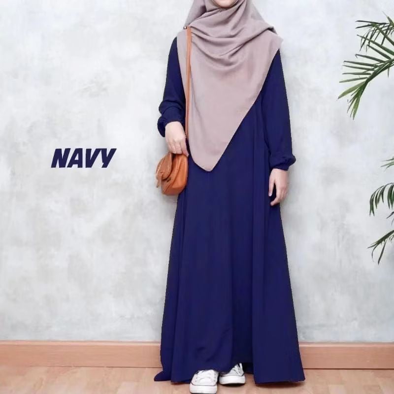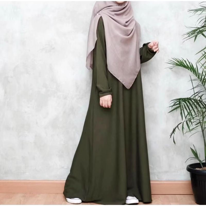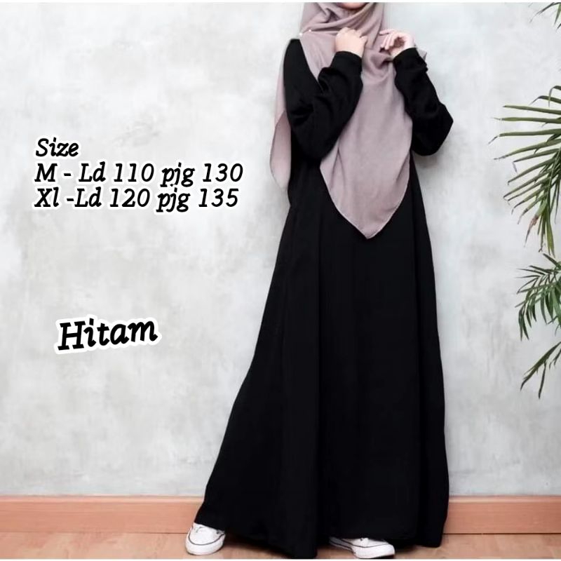 Dress Gamis Abaya hitam lengan karet simple Polos Remaja Dewasa Wanita