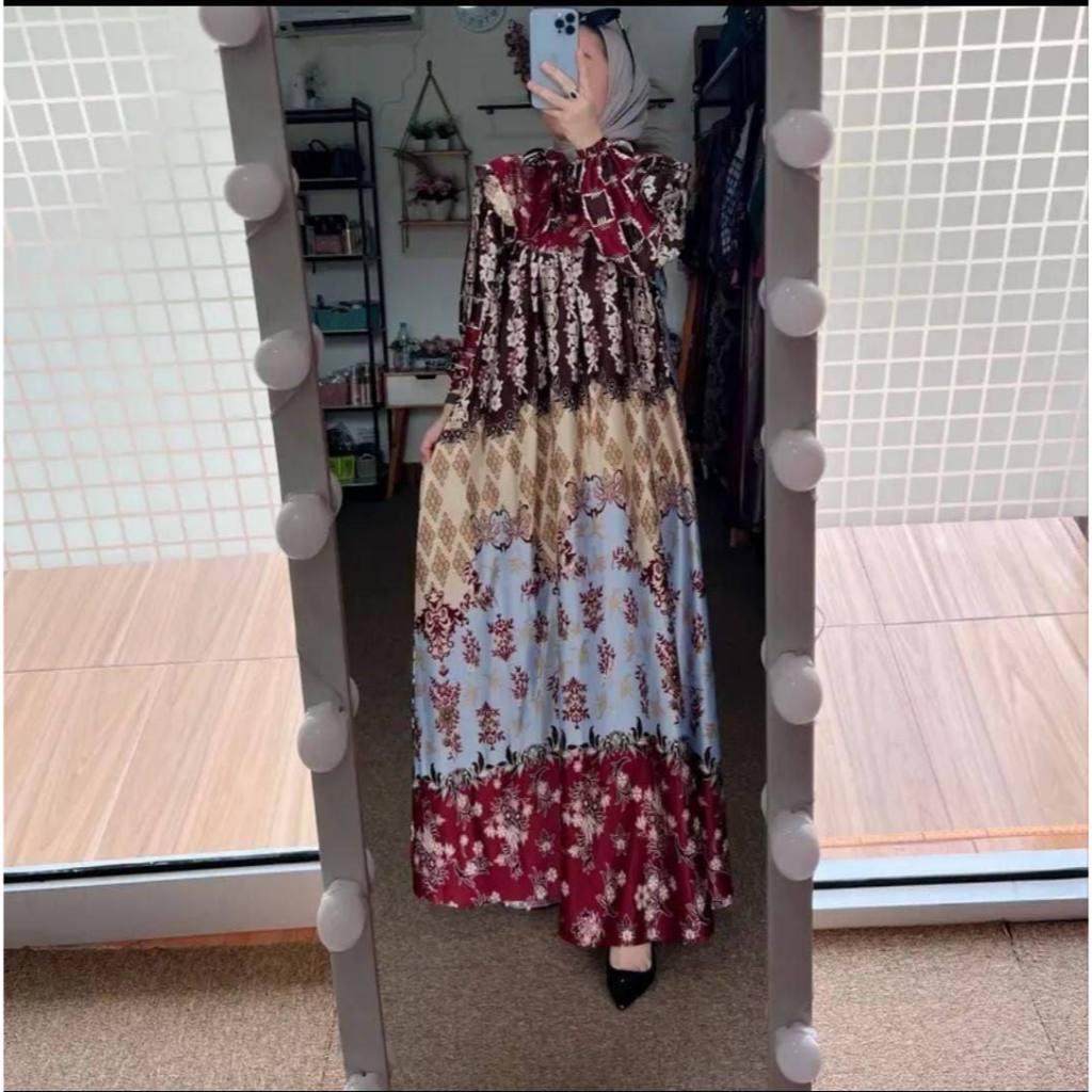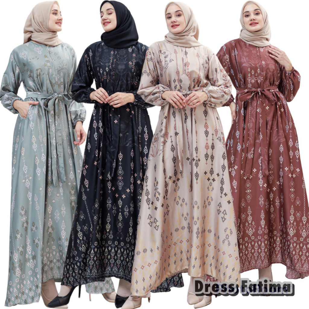 Dress Gamis Fatima Silky Bunga Baju Wanita Dress Wanita Pakaian Wanita