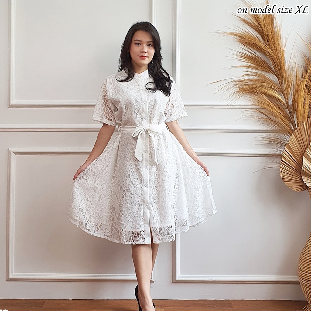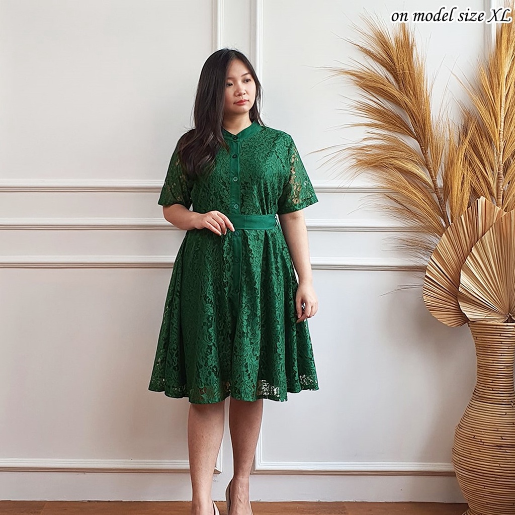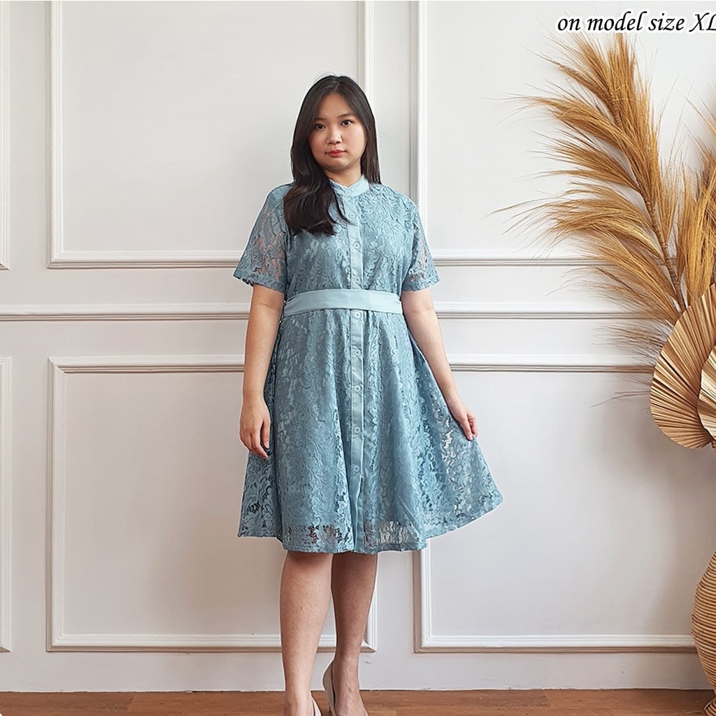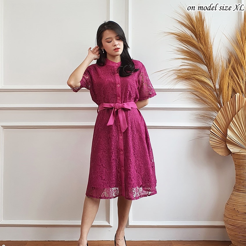 Dress Gaun Pesta Brokat Pendek Dress Wanita Modern Mewah untuk Kondangan Dress Simple Elegan