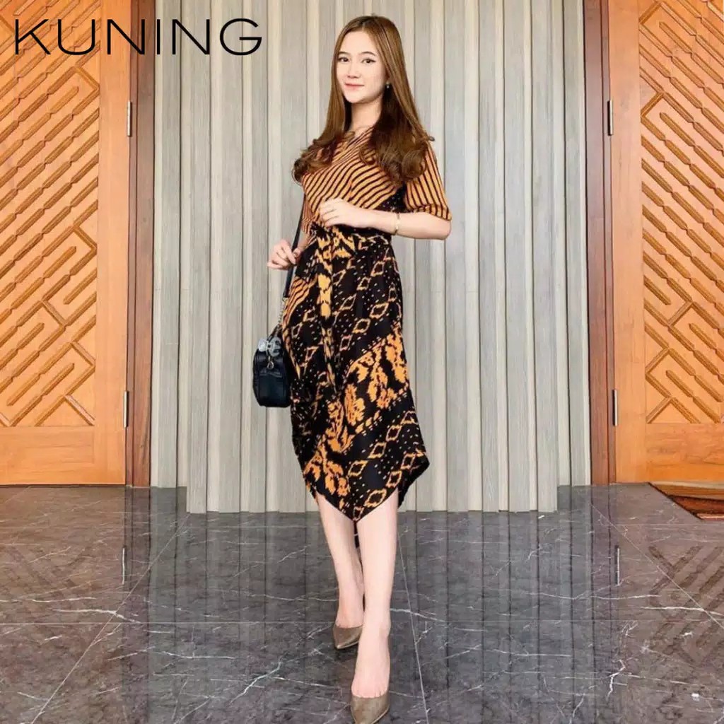 Dress Lancip Tenun Troso Batik Salur Asimetris Midi Etnik Kerja Kondangan Pesta Cantik