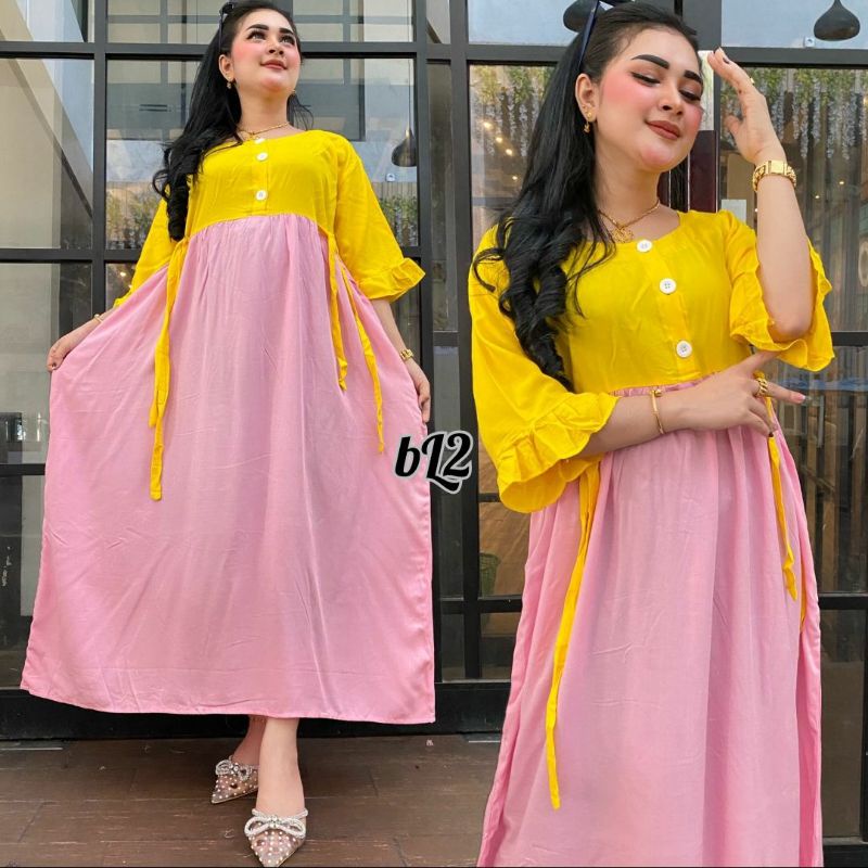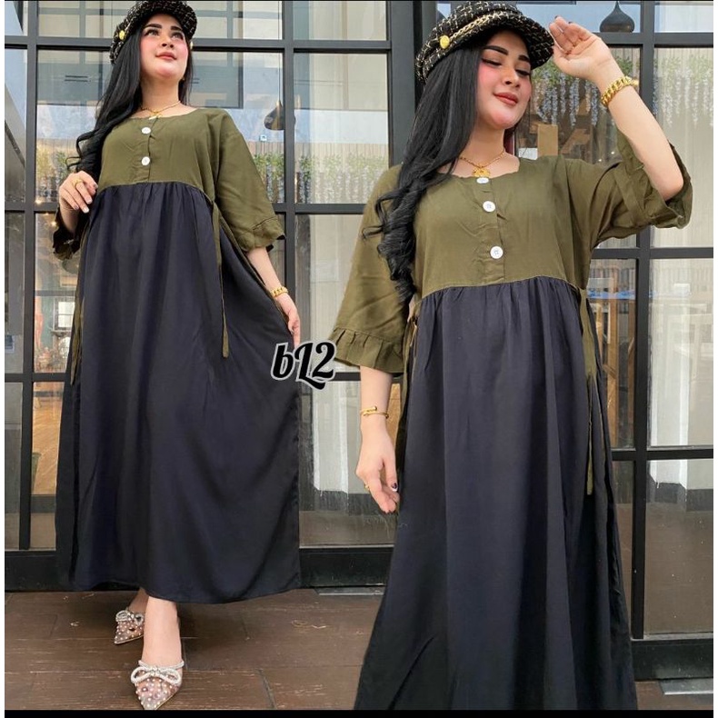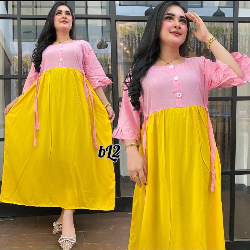 Dress Polos Kombinasi Terbaru - Daster Polos Dua Warna [Bisa COD]