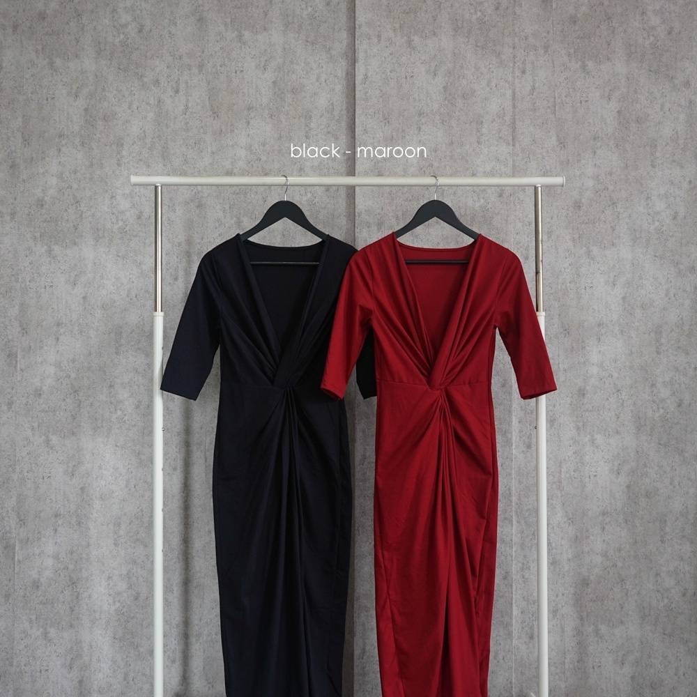 Dress Terkini Wanita / Penelope Dress FG Gaun Pesta Natal Simple Kerah V Bodycon Stretch