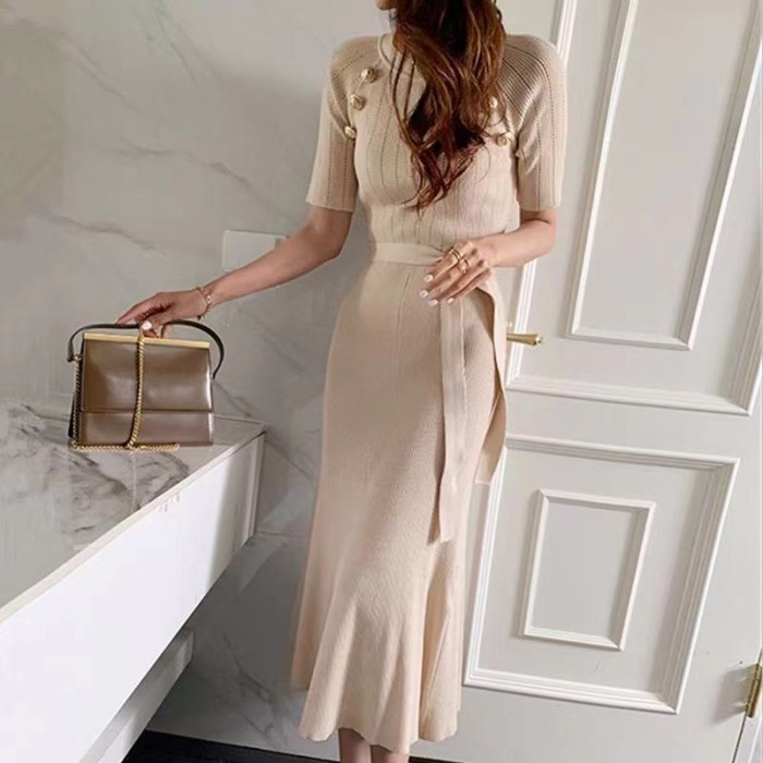Dress Wanita Rajut Korean Style ICONZ Import + Tali (2115/00339)