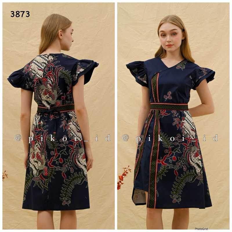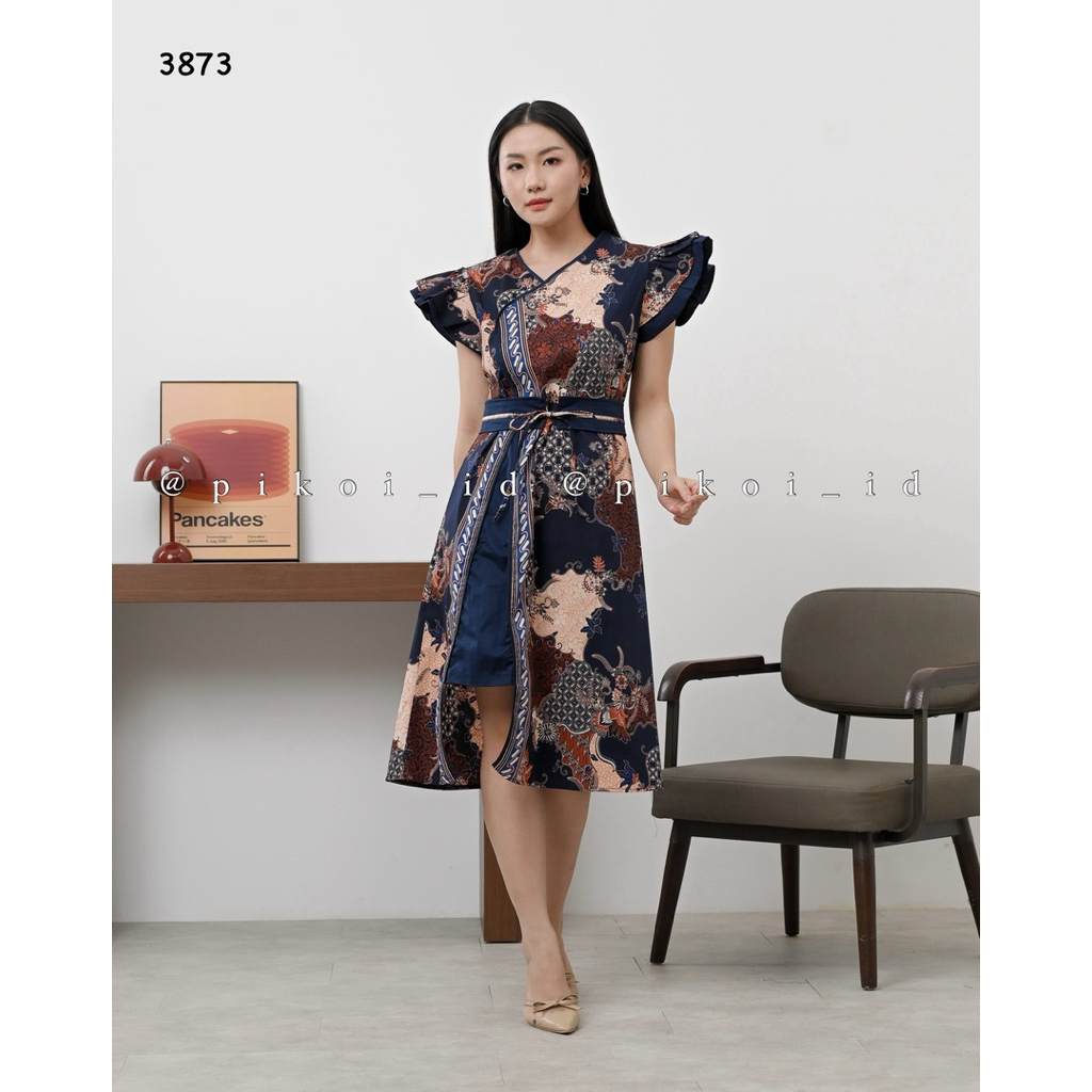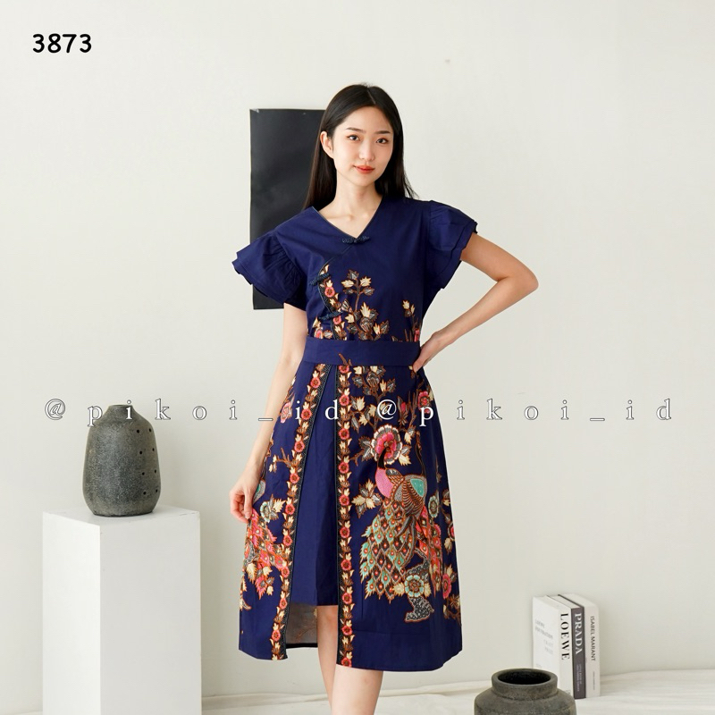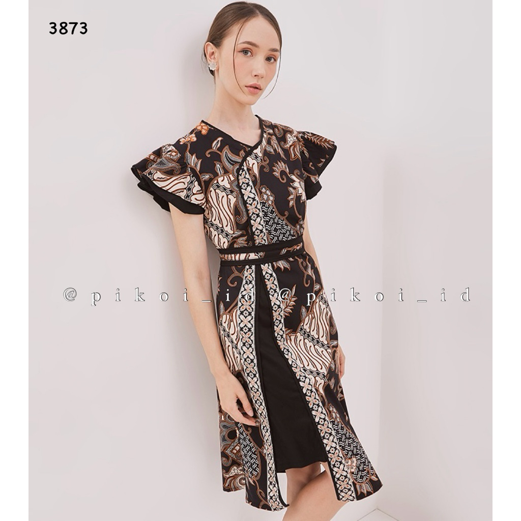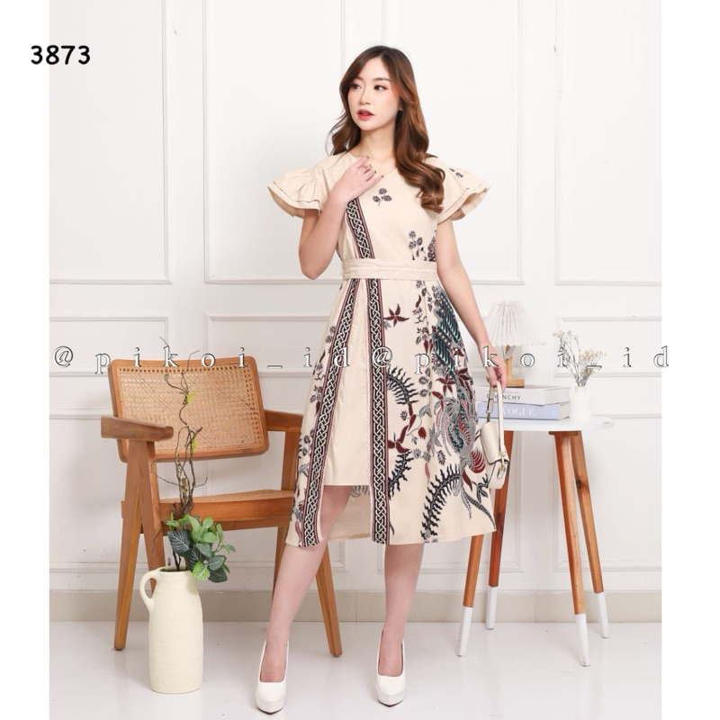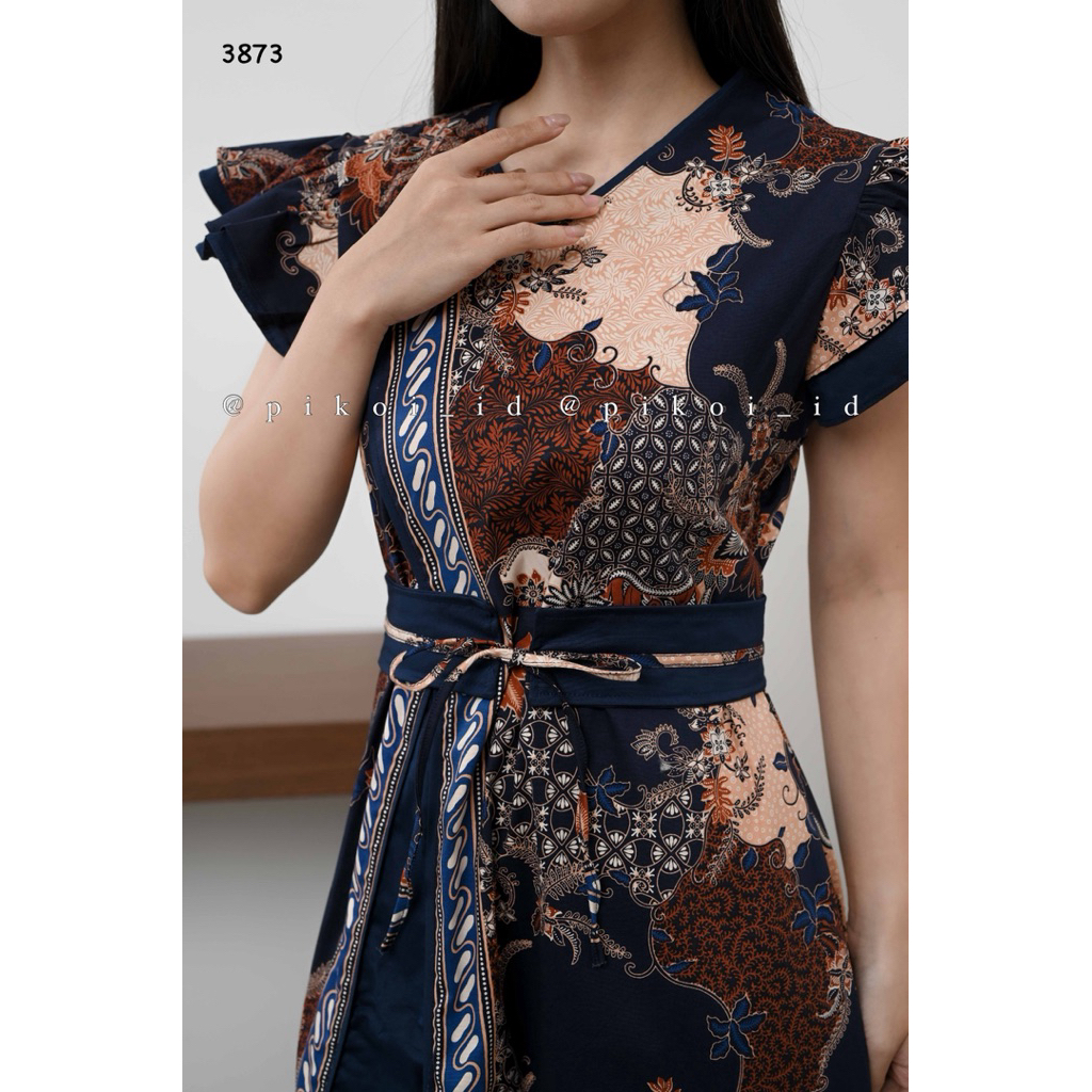 Dress batik wanita modern / gaun pesta batik wanita modern / dres batik katun wanita kekinian / gaun pesta batik / sholder pad dress batik 3873