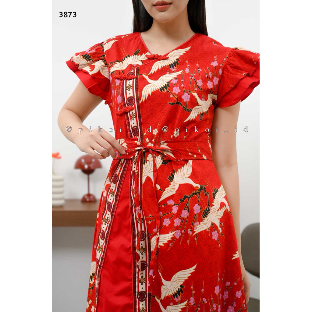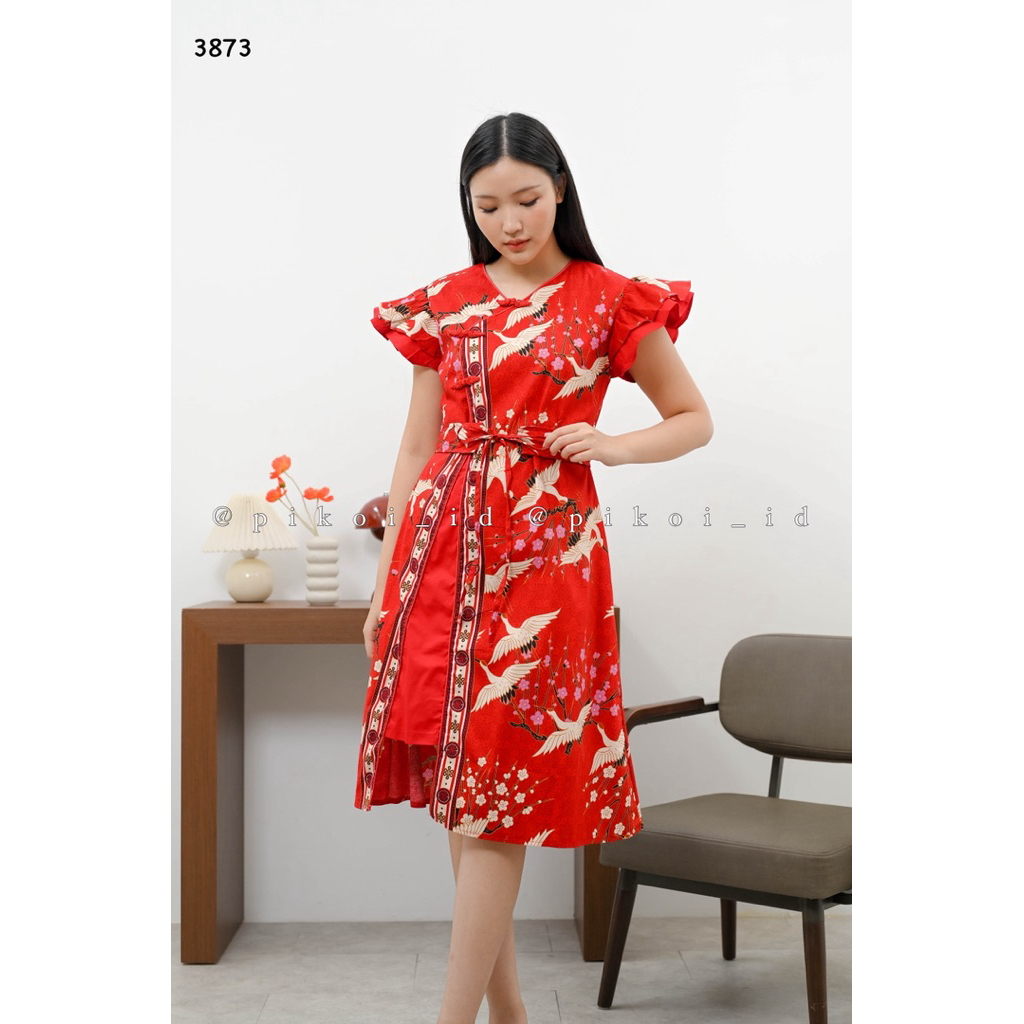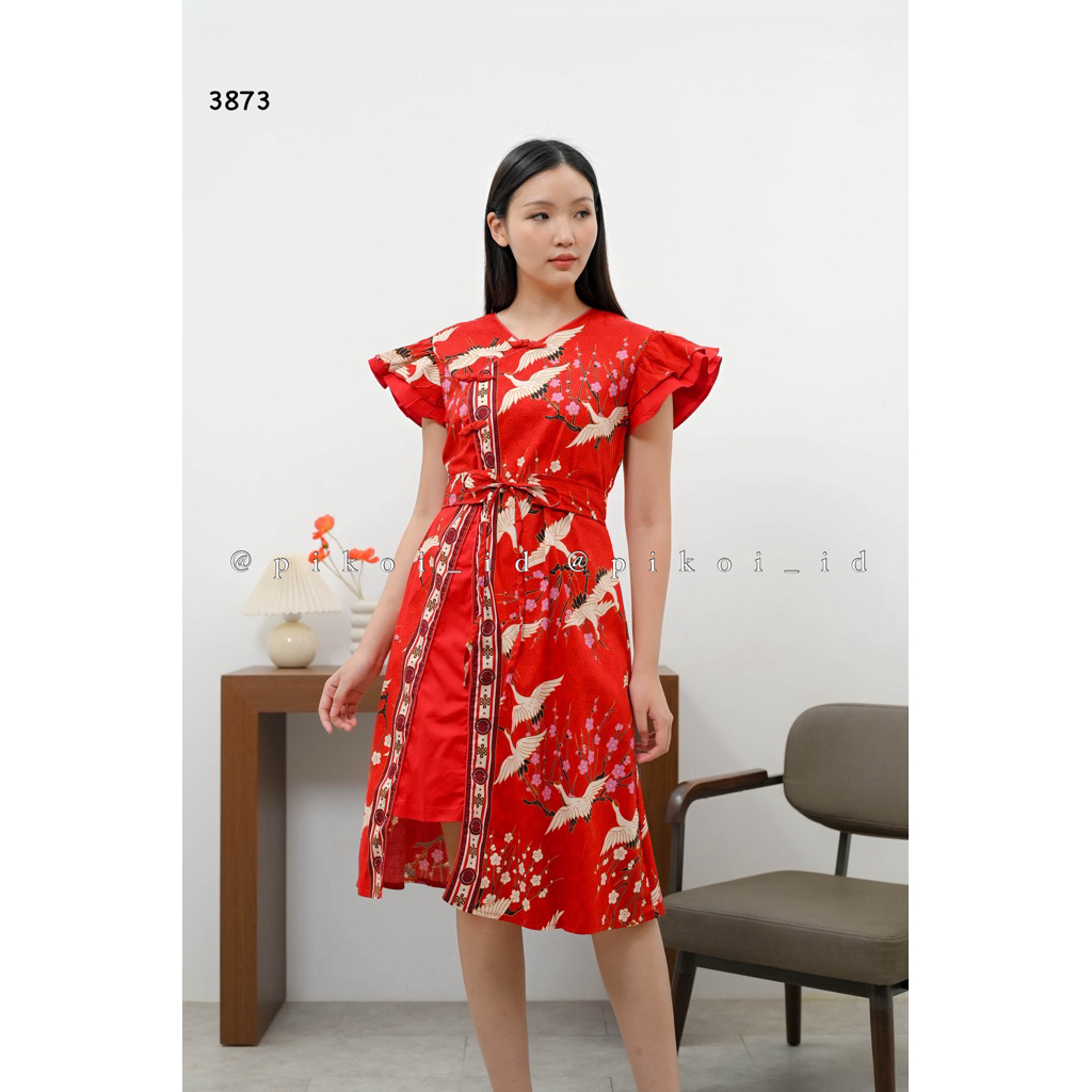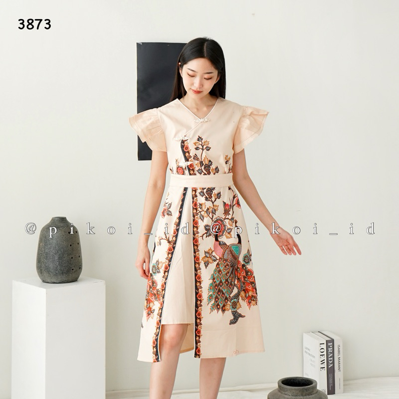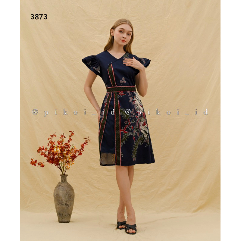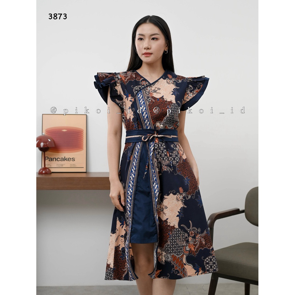 Dress batik wanita modern / gaun pesta batik wanita modern / dres batik katun wanita kekinian / gaun pesta batik / sholder pad dress batik 3873