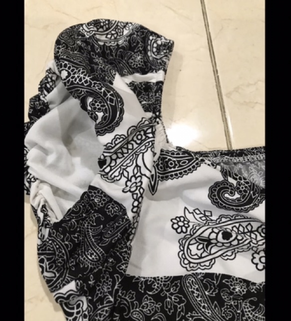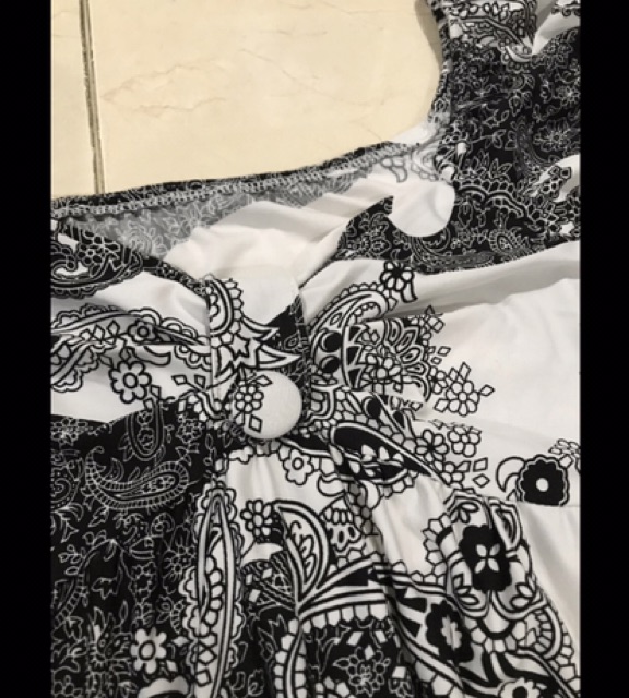 Dress/ terusan wanita motif batik hitam putih