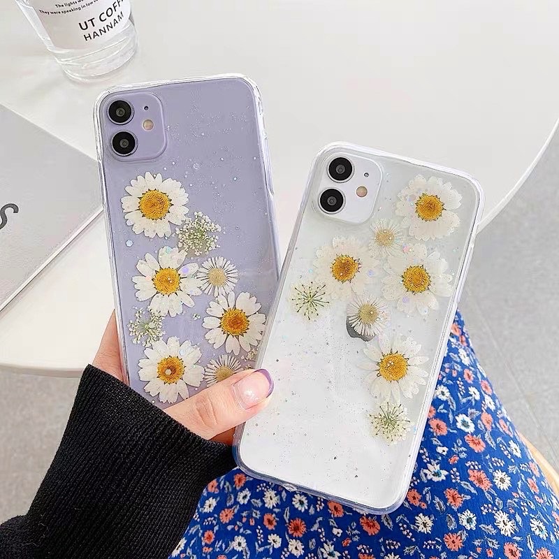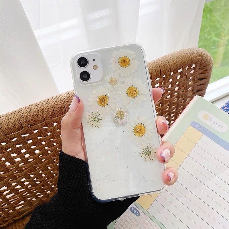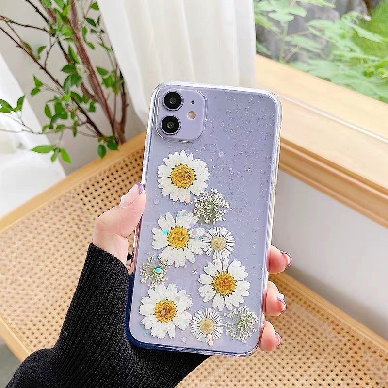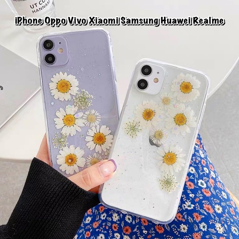 Dried Flower Daisy Combo Case Bunga Kering Iphone Oppo Vivo Xiaomi Samsung Huawei Realme C21 C25 V23e A95 Reno 2 3 4 5 6 7 8 9 Redmi Note 10 Pro Iphone 16 16Pro 16Promax 16 Plus