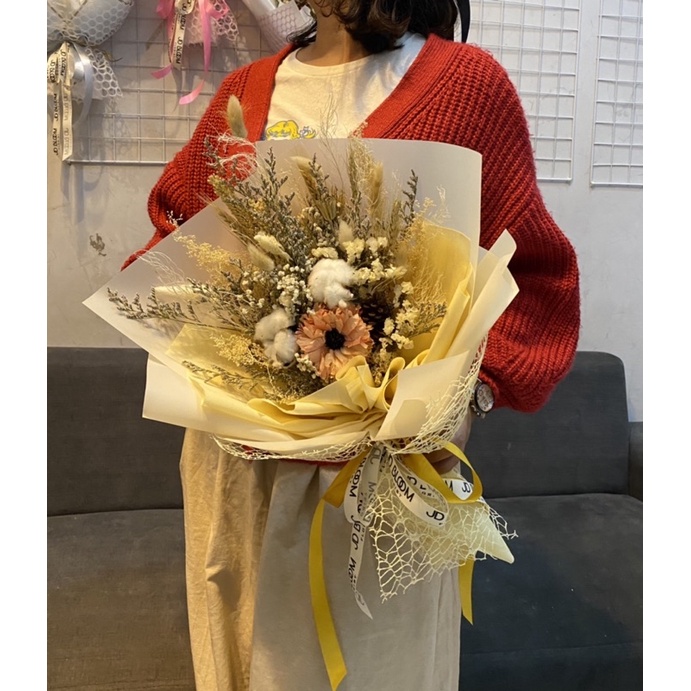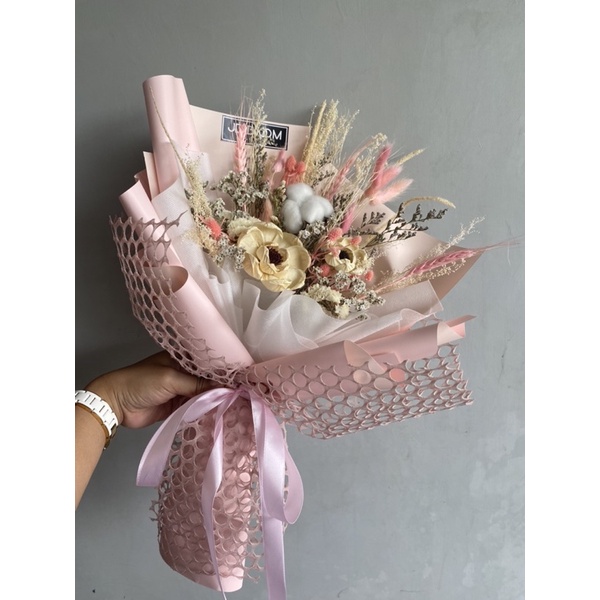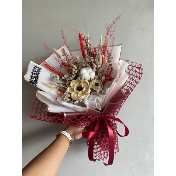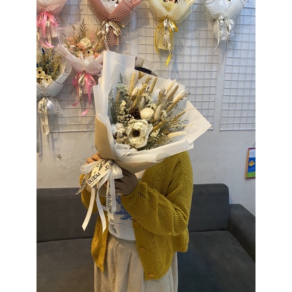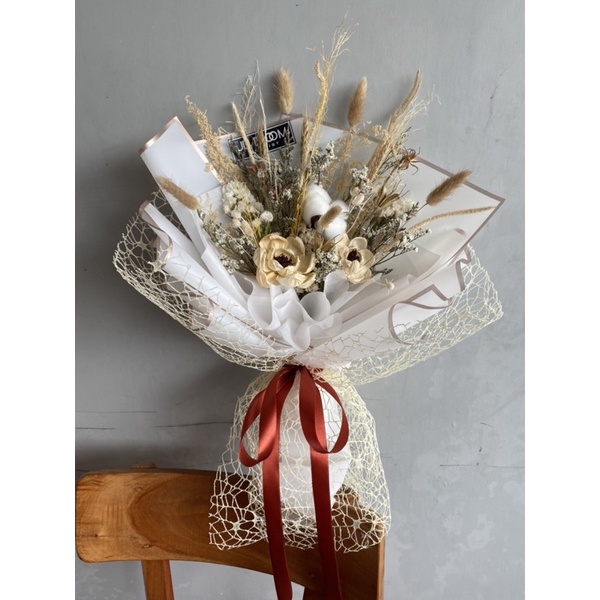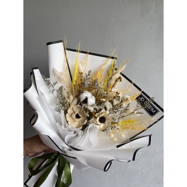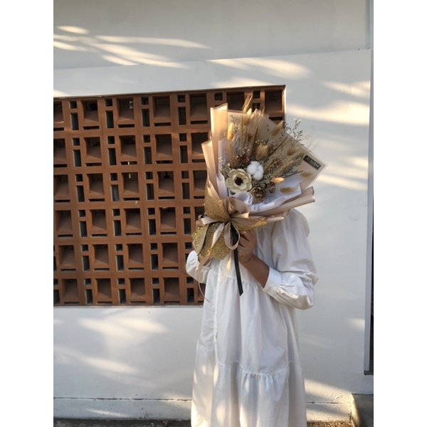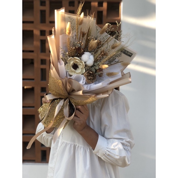 Dried Flowers Buket Shade Gold / Buket bunga kering warna emas FREE KARU UCAPAN DAN FREE PACKING