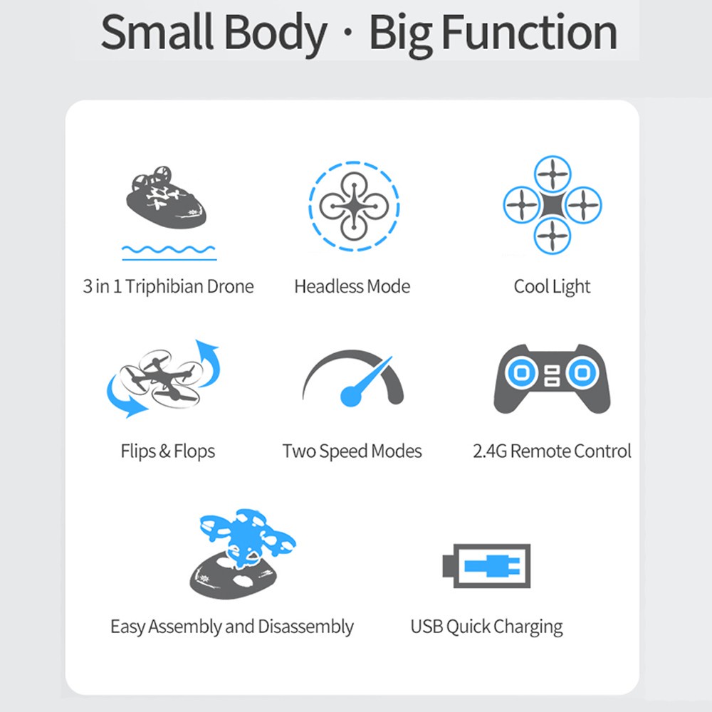 Drone Mini Murah JJRC H36F H36 F H56 H74 H102 RH821 NIHUI Terzetto 3 In 1 Drone Ground Water Air Racing Boat 3D Flip