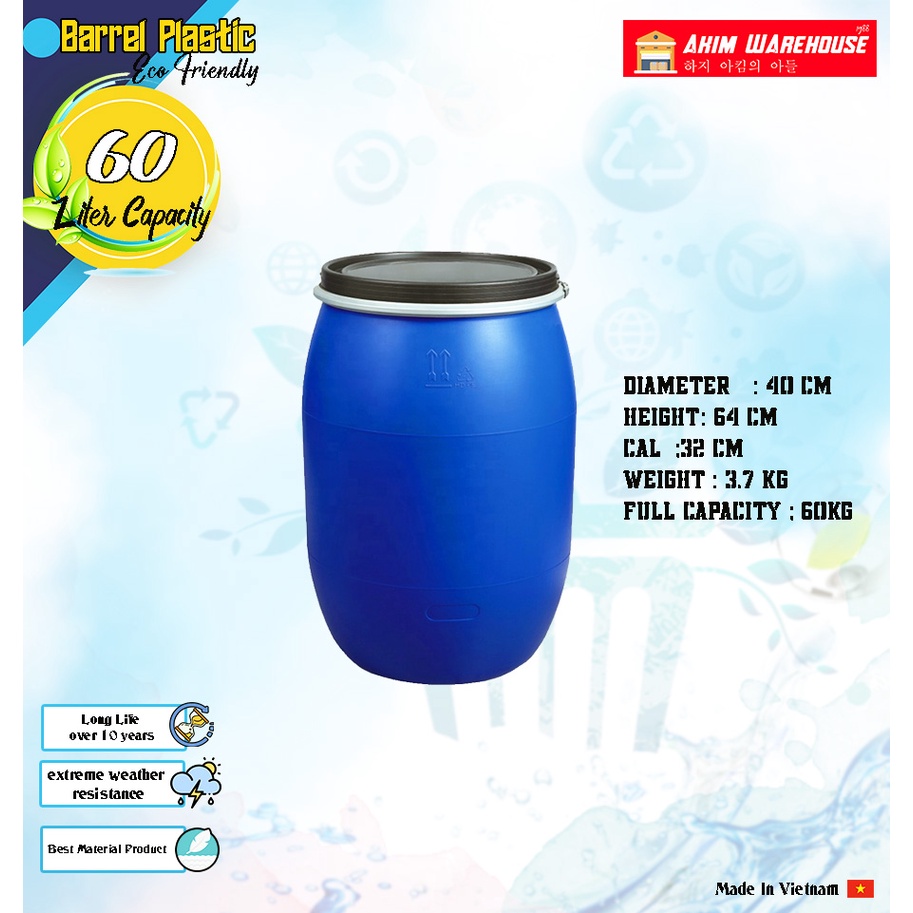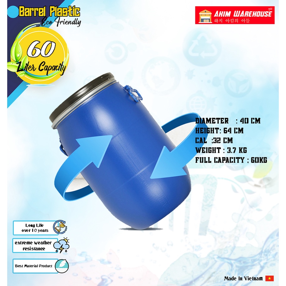 Drum Tong 60 & 80 Liter Plastik Biru Grade ORI Industrial Fermentasi/Air/Kimia/Tempat Sampah