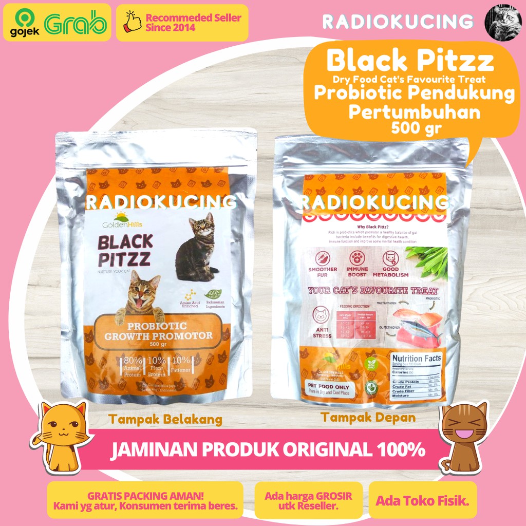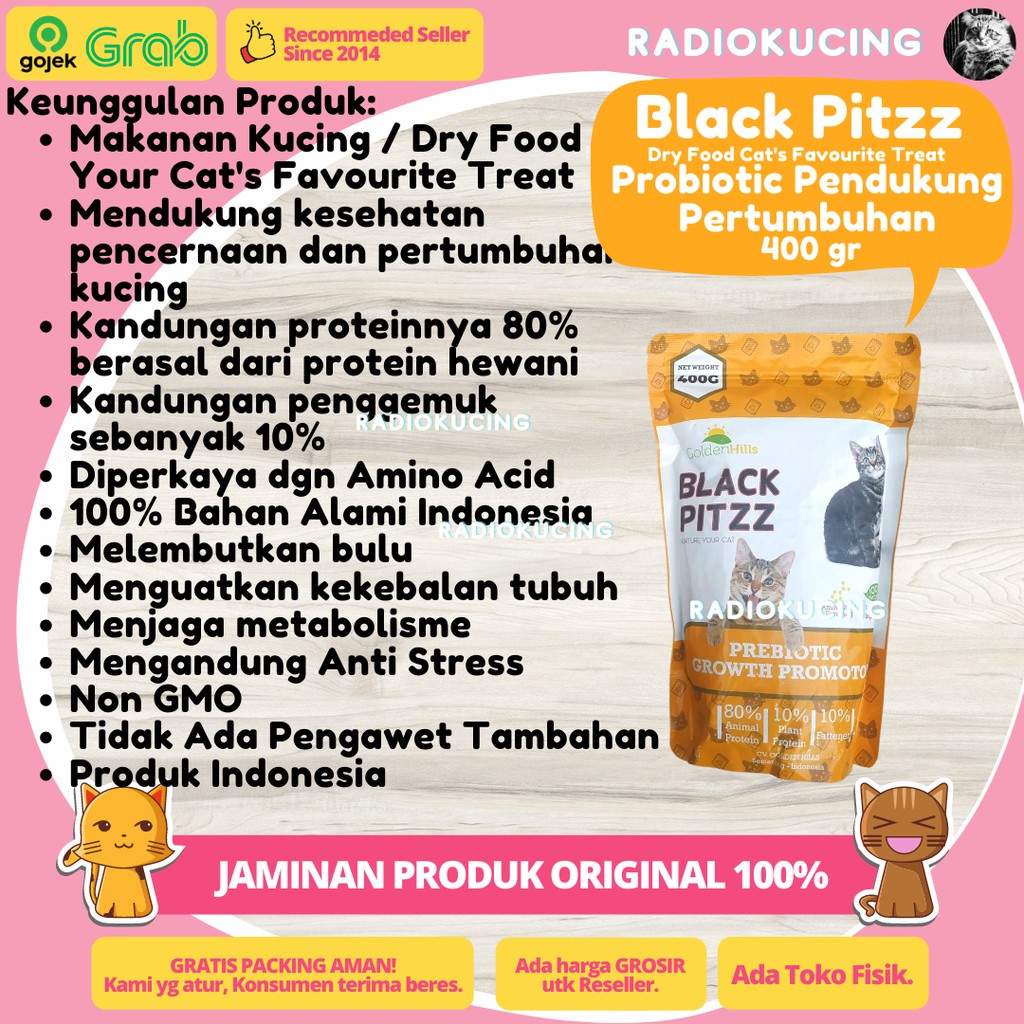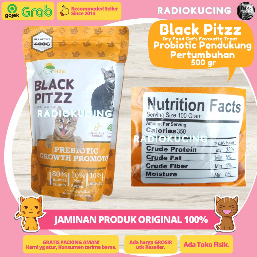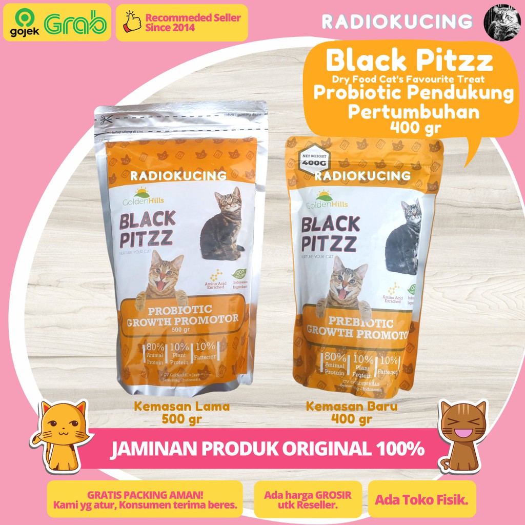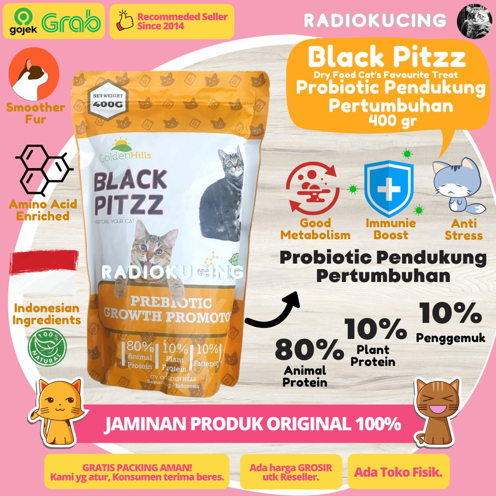 Dry Food Black Pitzz Probiotic Growth Promotor 400 gr Makanan Kucing Pertumbuhan & Pencernaan Sehat [ JUWIES RADIO KUCING ]