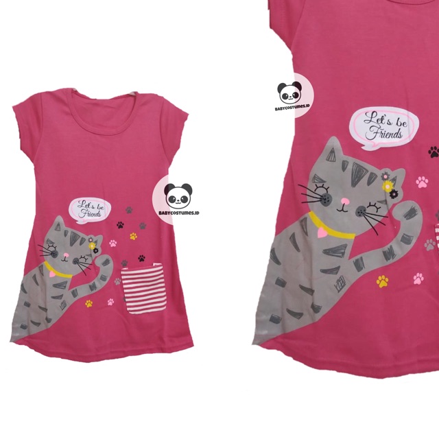 (2-5 tahun) Dress Premium Alfa/ Dress anak / dress motif kucing/ dress kelinci/ Baju terusan anak