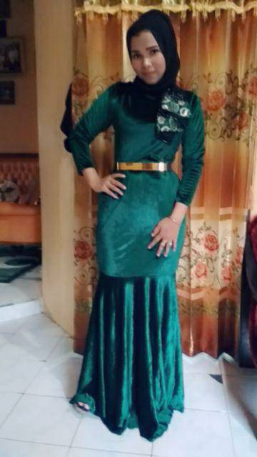 Dress duyung Bludru L79 + Sabuk Gaun panjang bludru Gamis duyung Maxi duyung fashion muslim duyung
