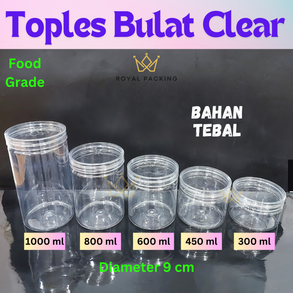 [RP] Toples Plastik Bulat Bening 300 ml - 1500 ml Food Grade | Toples Kue Kering | Toples Nastar | Toples Silinder Cylinder