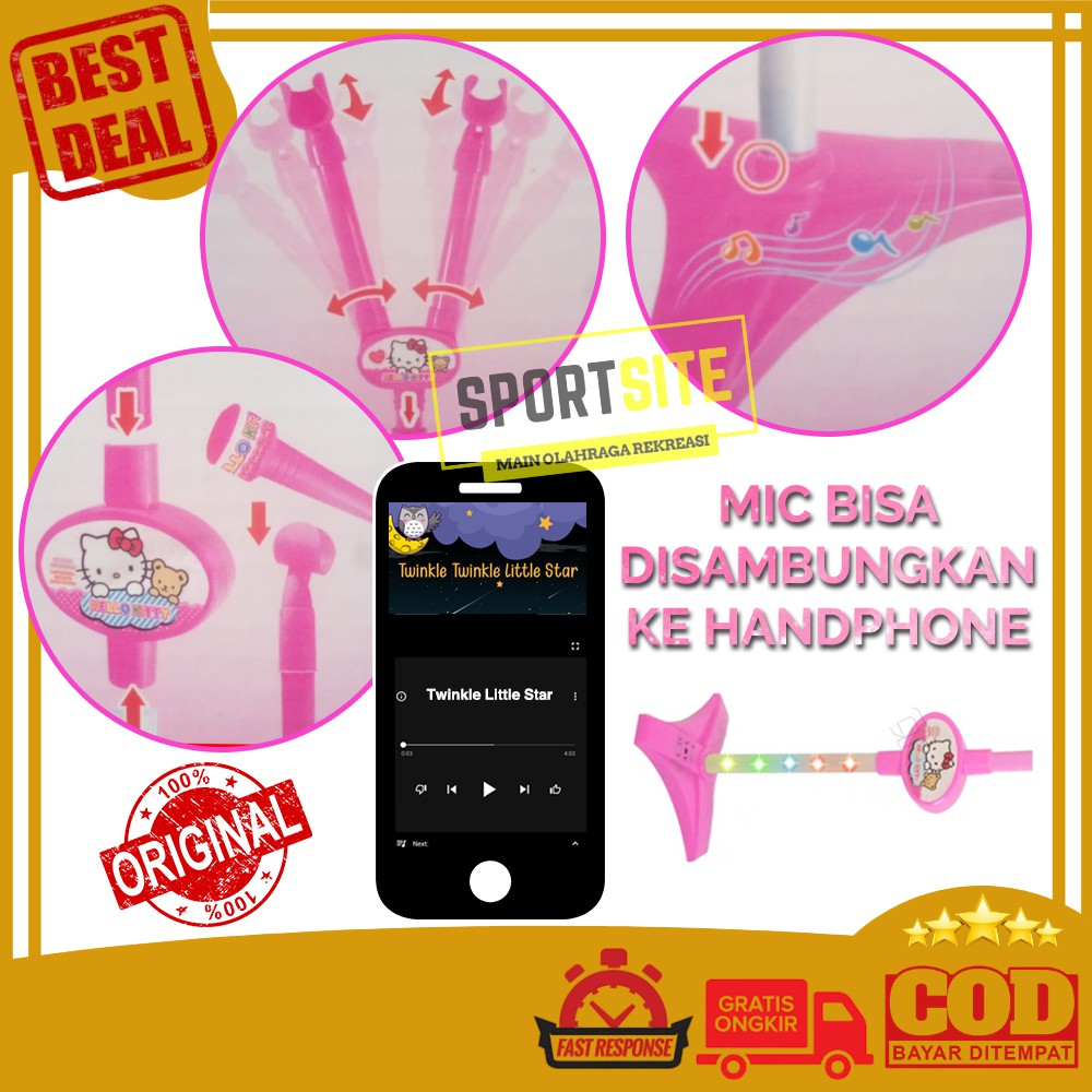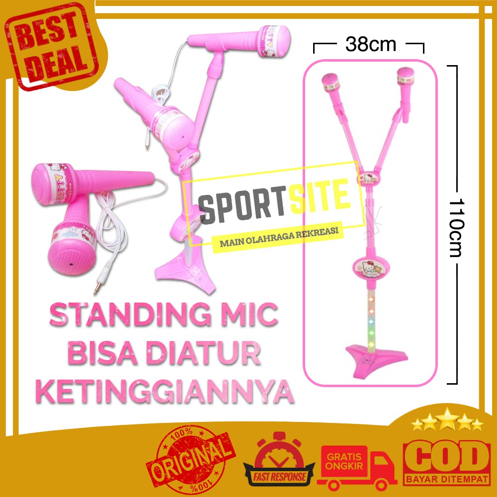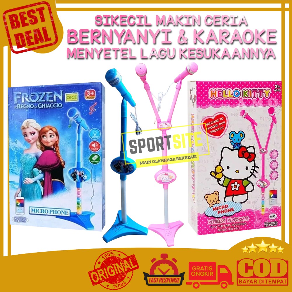 Duo Microphone Hello Kitty Frozen Standing Mic Nyanyi Karaoke Anak Kado Lucu Mainan Cewe Perempuan Duet