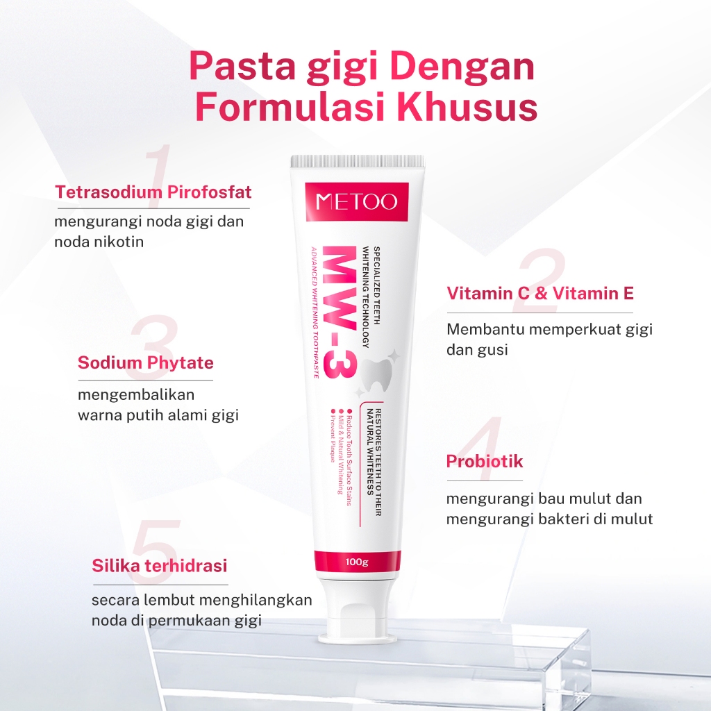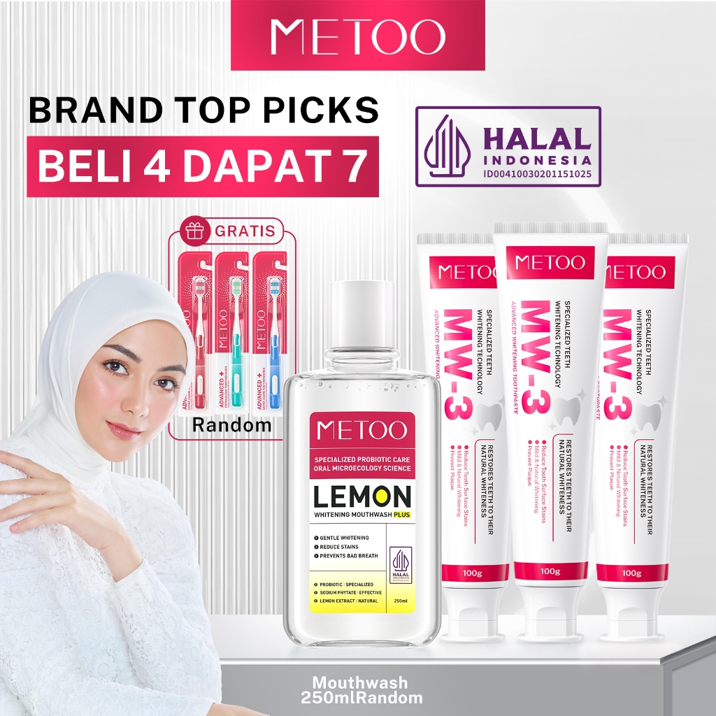 [MURAH BGT] METOO MW-3 Advanced Whitening Tooth Paste 100gr*3 + Mouthwash 250ml*1 + Tooth Brush*3 - BPOM Gigi Putih / Karang Gigi / Membersihkan Noda Gigi / Gigi Sensitif / Bau Mulut / non-alkohol