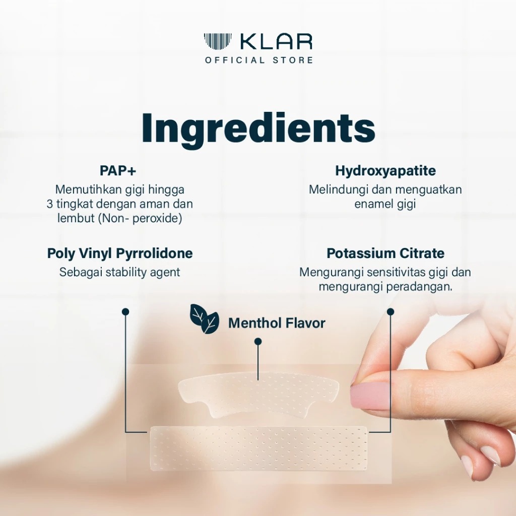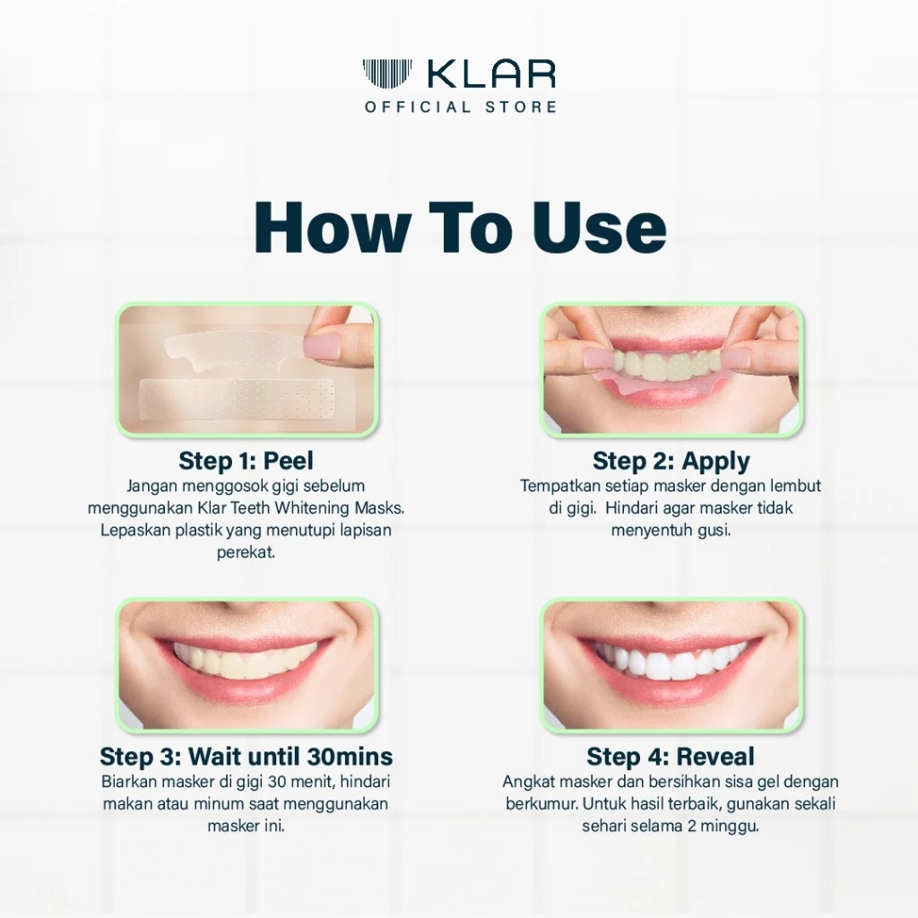 KLAR Teeth Whitening Mask - Whitening Strips Pemutih Gigi Tanpa Ngilu Dalam 14 Hari [14 Sachet]