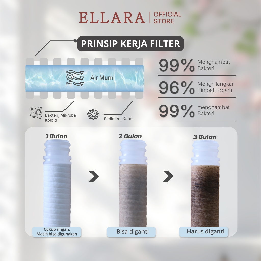 Ellara REFIL SHOWER PURE FILTER - Refill Shower untuk menyaring kotoran air karat, air klorin, air besi, air lumut untuk meningkatkan kesegaran saat mandi dengan pemasangan dan perawatan yang sangat mudah