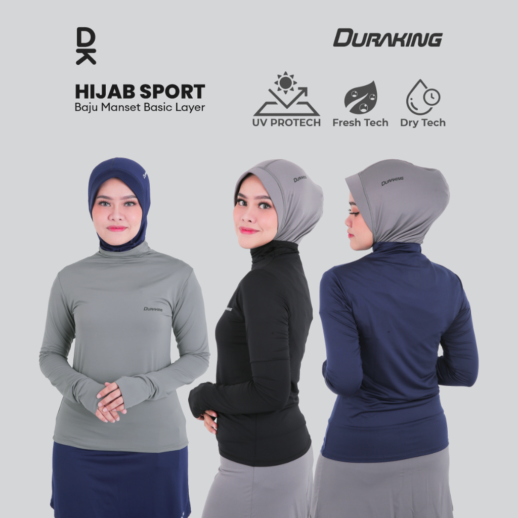 Duraking Baju Manset Hijab Sports Wanita Basic Layer